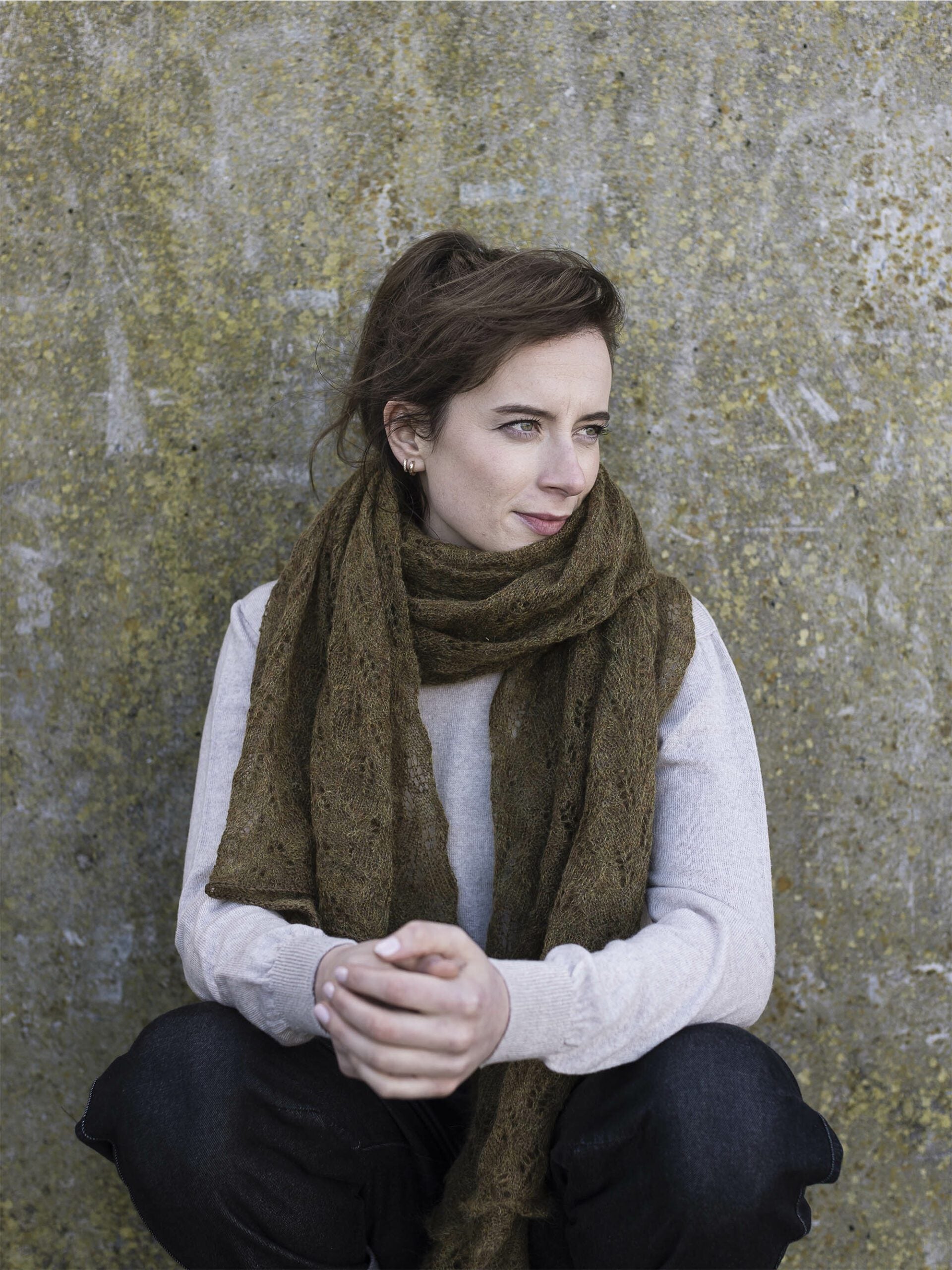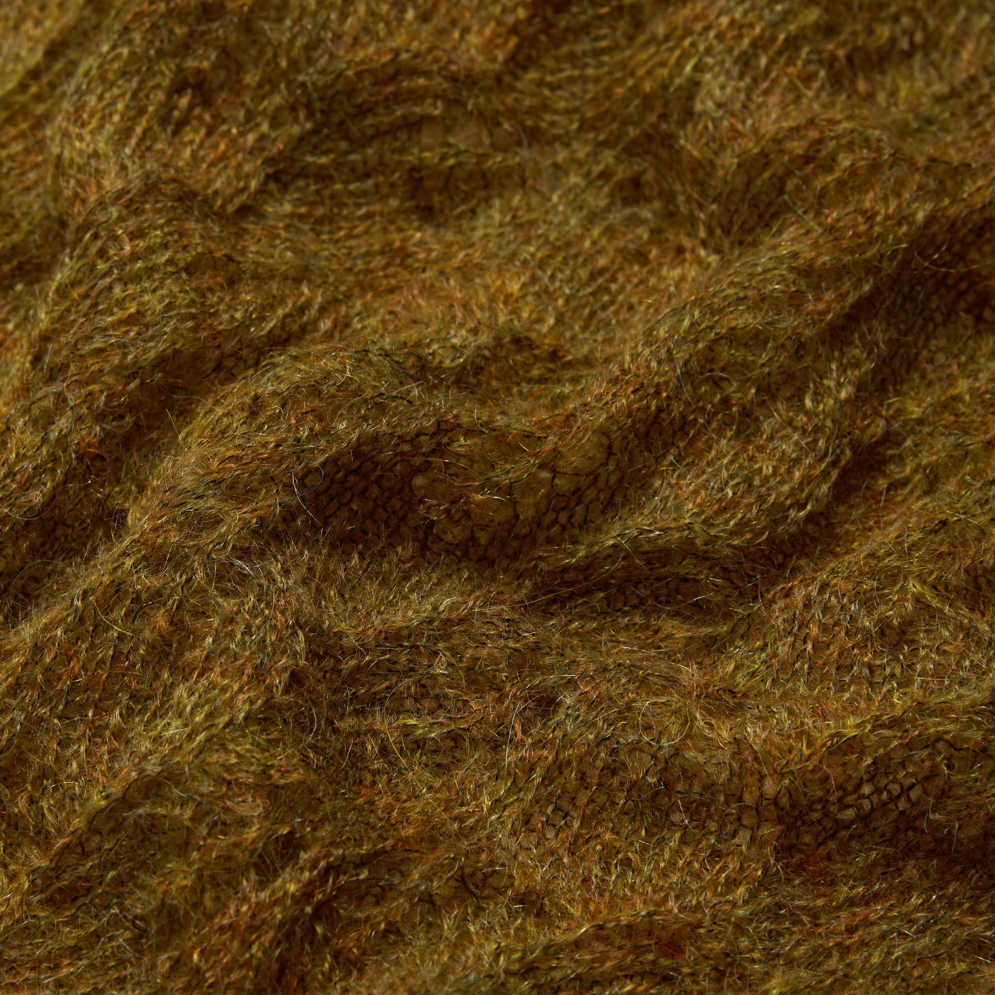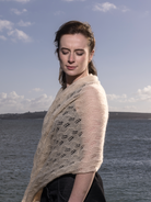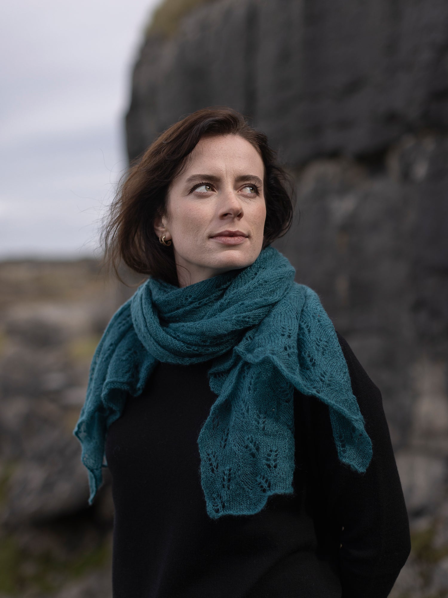 Our softest shawl carefully knitted from mohair and silk, inspired by the delicate maidenhair fern that grows from the damp crevices of the island's limestone pavement. From the family of the Ribbon fern, it has delicate fan-shape leaf clusters which we have emulated in an all-over pattern. Extremely lightweight and lofty, this uniquely nature-inspired, beautiful knit shawl can be gathered and worn as a soft neck-warmer, or spread out around the shoulders to its full width as an elegant occasion accessory. This generously outsized shawl measures 70cm x 180cm.