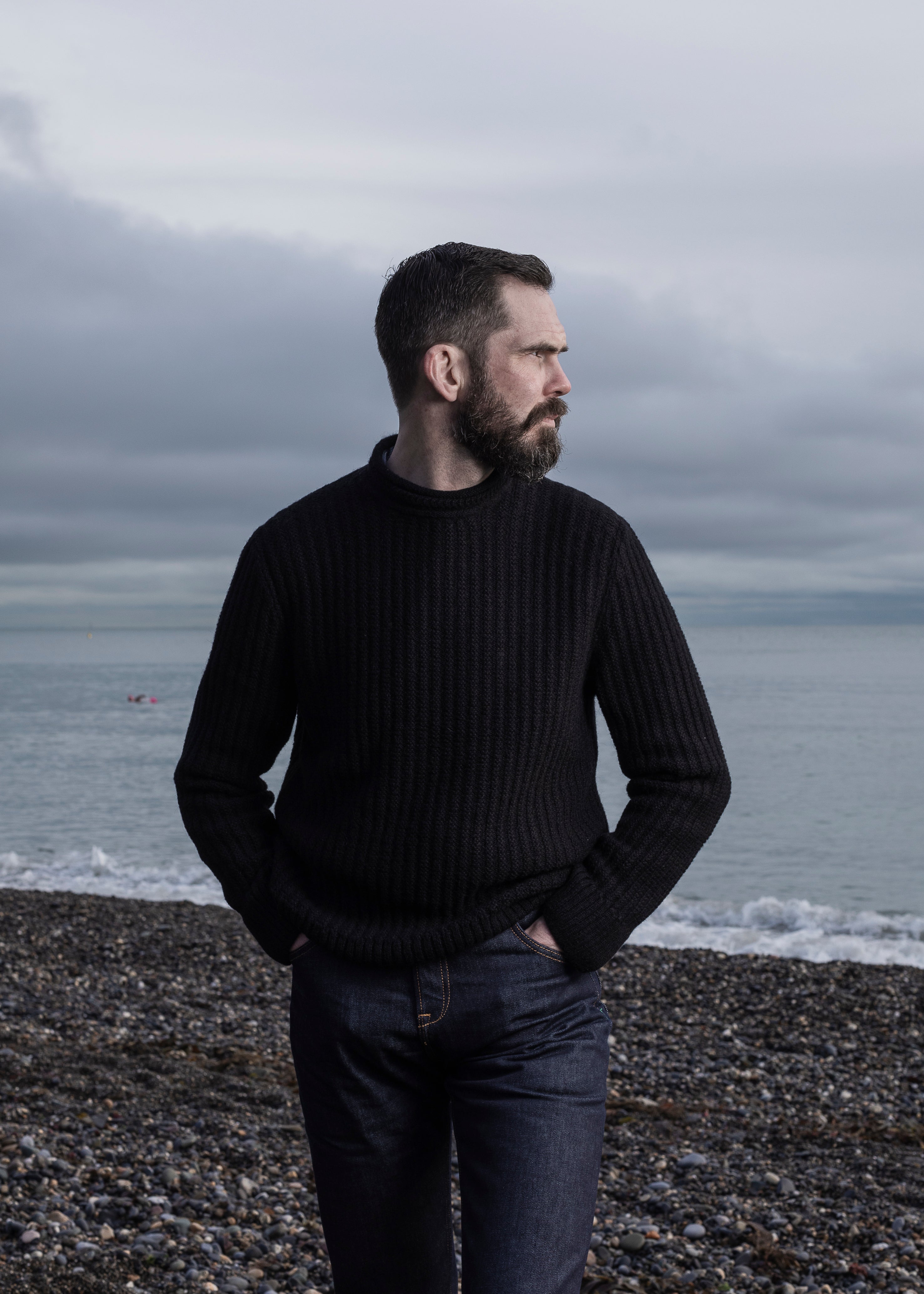 Druid Theatre Company celebrate 50 years in 2025 - read more about The Druid Connection in our Island Diary. Some of the Druid ensemble have helped model our knitwear over the years - the innate character of these talented actors complimenting the depth of care that goes into making each Inis Meáin piece. To celebrate Druid and our shared history, we have relaunched the Undyed Alpaca Moss Rib Sweater in Black, modelled here by long-time Druid ensemble member, Marty Rea.