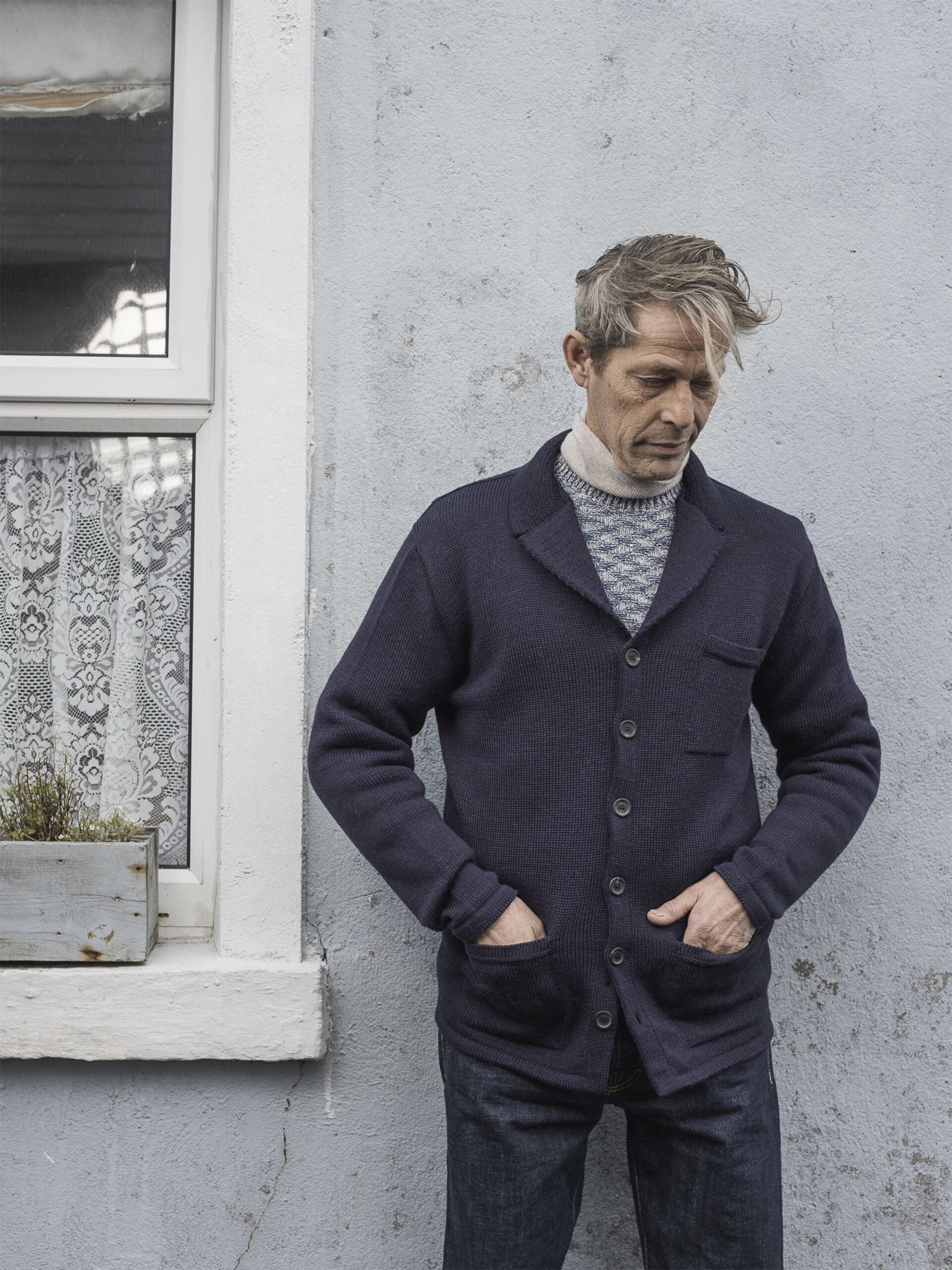 Murray Pearlstein, founder of the iconic Louis Boston menswear store first coined the name Pub Jacket for this gorgeous style 35 years ago, and we've used it with pride ever since. With a revere collar, the Inis Meáin Pub Jacket brings a relaxed elegance to both formal and informal wear. Our winter version is knitted in extra soft baby alpaca and silk, and plated with super-premium Cashmere and Merino for additional stability.