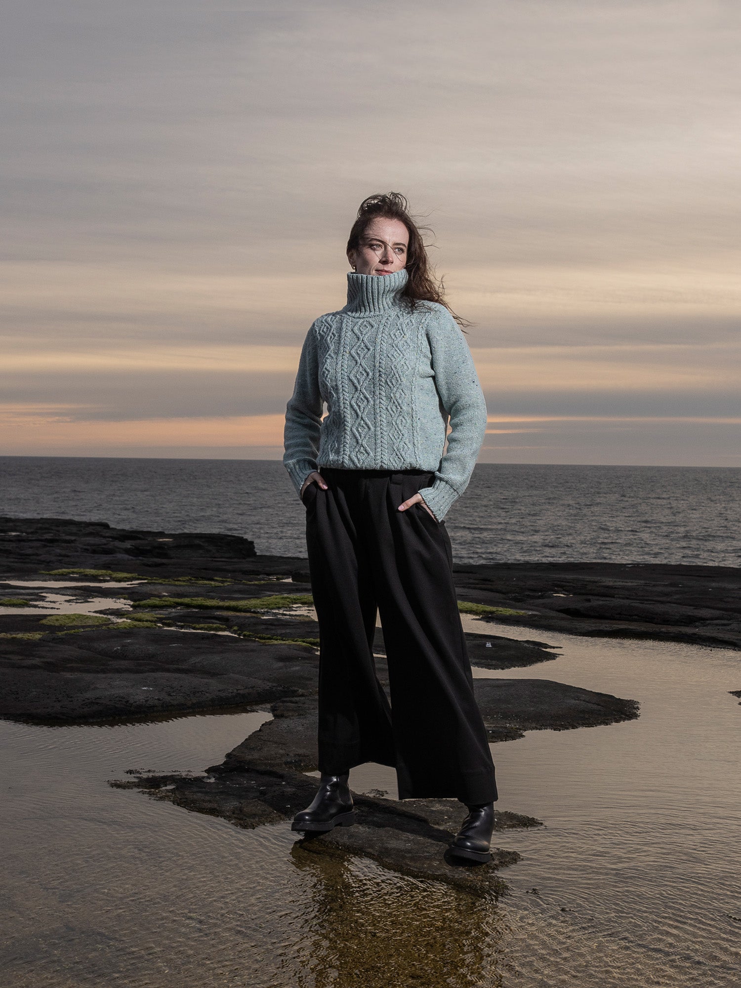 Inspired by the highly decorated styles once prized as Sunday Best formal wear on the Island, the Inis Meáin signature cable knit Cashmere Aran Turtle Neck combines luxury with heritage. This Aran sweater has a gentle turtle neck fit – providing additional warmth without constriction. Purl stitch sleeves without cables keep the silhouette streamline and stylish, lending warmth without bulk. Crafted with super-premium Cashmere and Merino yarn from Italian heritage producer, Filati Biagioli Modesto, made to the highest European environmental standards using only organic dyes.
