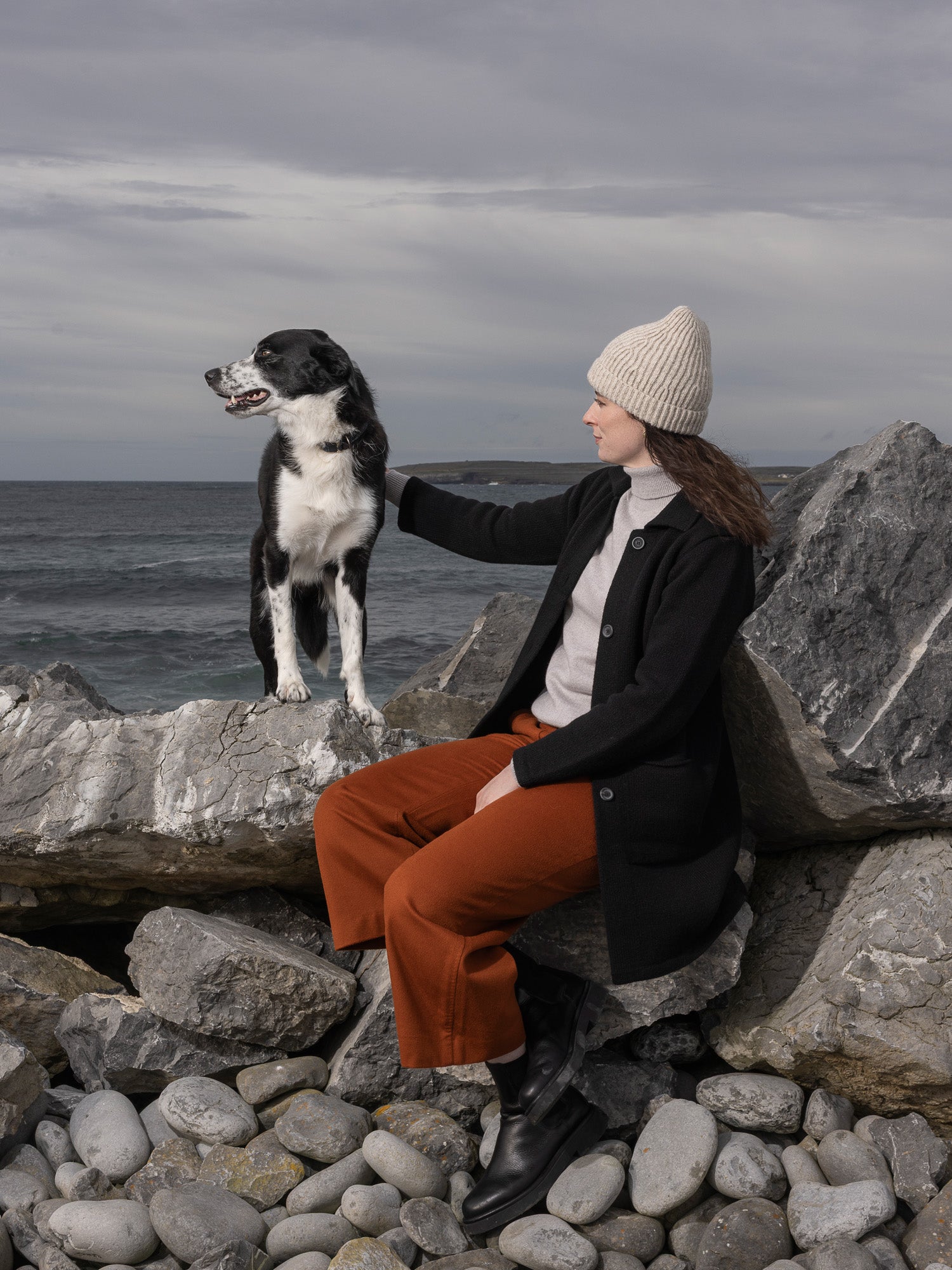 We were inspired by the famed 19th century nomadic poet Raftery and his epic poem Seanchas na Sceiche in which he berates a bush for failing him in his search for shelter. His clothes were often remarked upon, particularly Cóta Raiftearaí, so in tribute, we designed a beautiful soft Donegal cashmere and merino long coat which has become an Inis Meáin signature piece in our Men's Collection. Now we have designed a variation with more feminine styling, including a slightly shorter length and a wider collar. Also known as Cóta Máire Ní Eidhin, after Raftery's muse, a famously beautiful lady from Gort, in Co. Galway. This iconic coat is a perfect combination of substance and sophistication, giving infinite options to achieve a unique multilayered and stylish knit-look. Crafted with super-premium Cashmere and Merino yarn from Italian heritage producer, Filati Biagioli Modesto, made to the highest European environmental standards using only organic dyes.