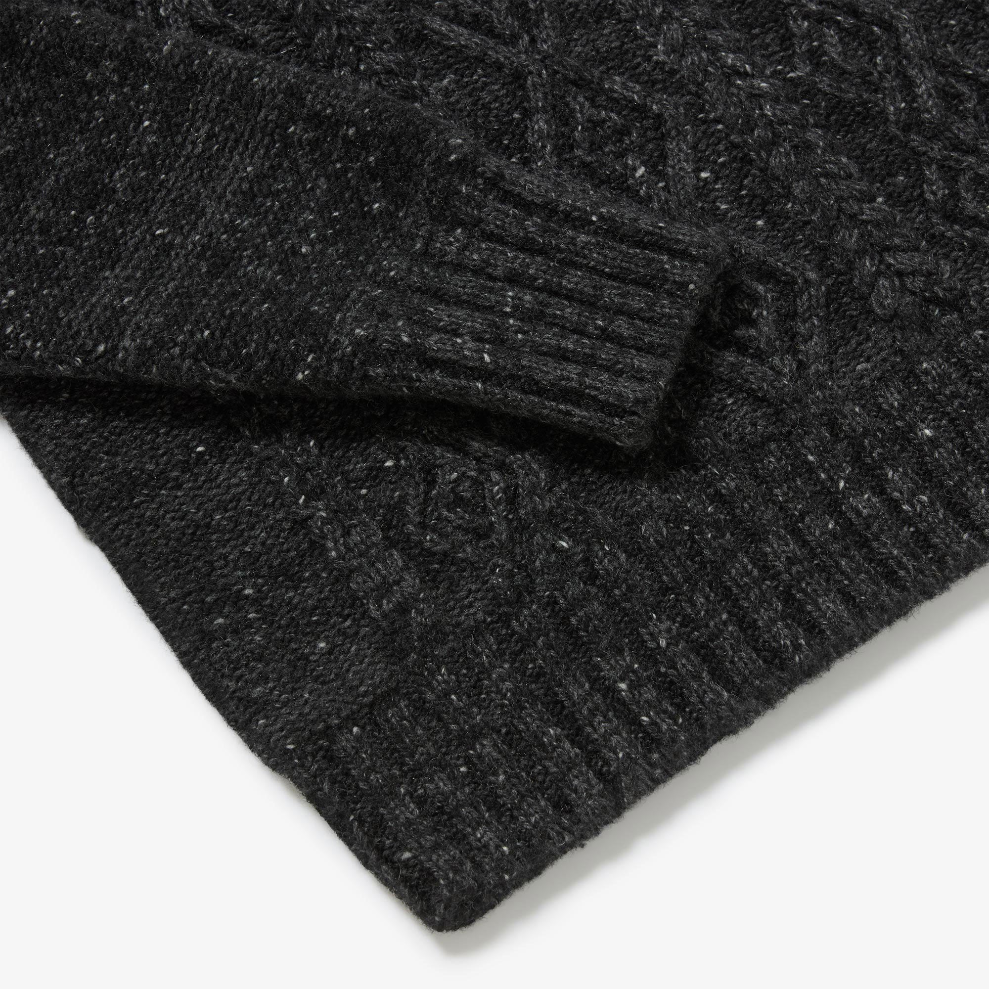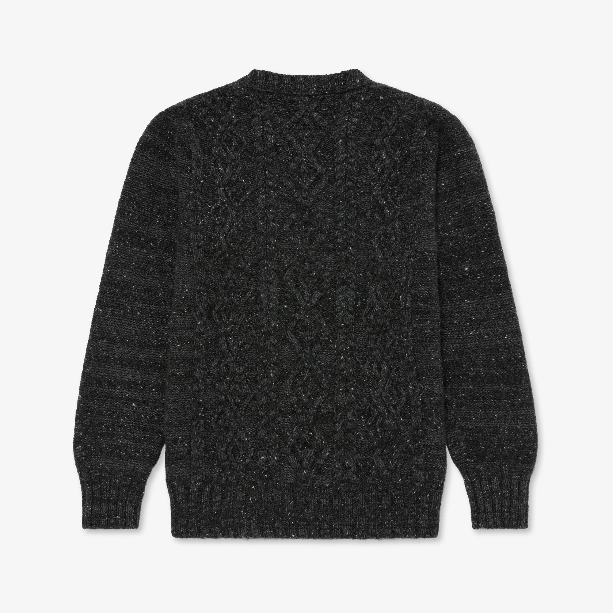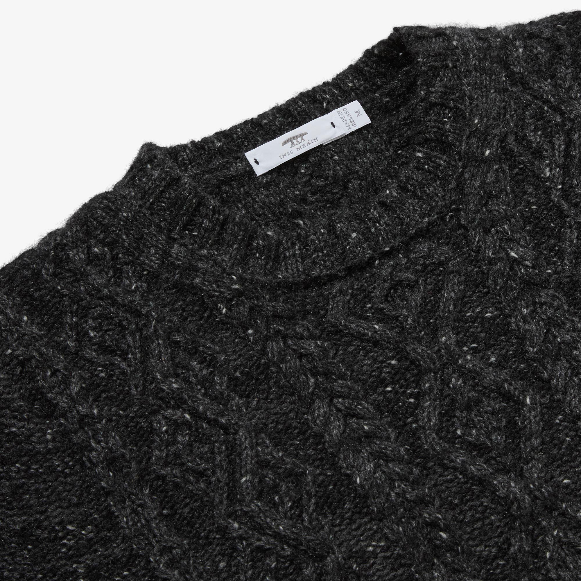 Available in Black Marl, a rich blend of black and charcoal tones with highlights of white fleck, in Bán (a creamy White), and in soft, natural Sand Marl in extremely limited quantities. The Original Aran Sweater from the Aran Islands – designed, made and hand-finished in our island workshop in Inis Meáin.