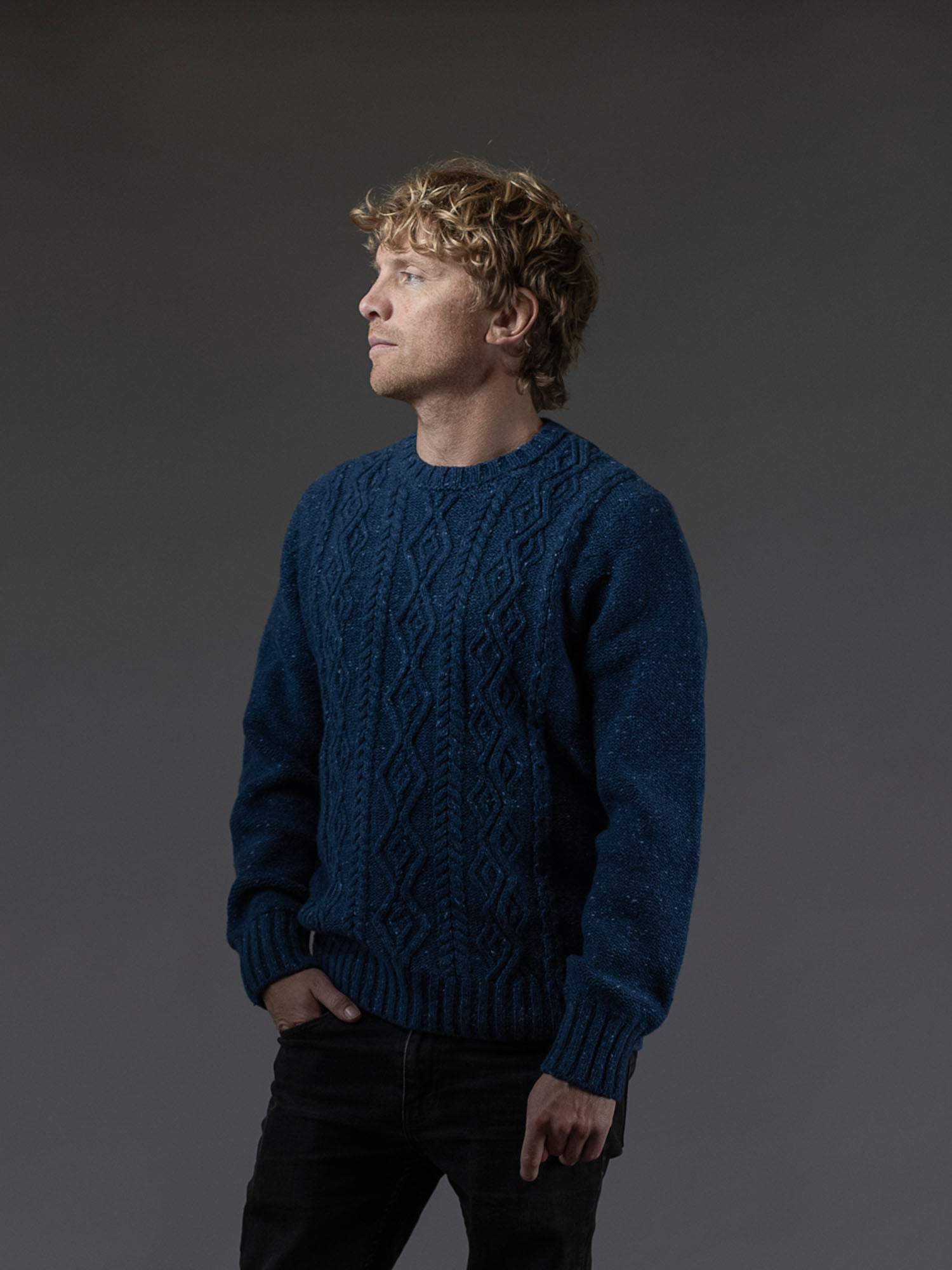 Inspired by the highly decorated styles once prized as Sunday Best formal wear on the Island, the Inis Meáin signature cable knit Cashmere Aran Sweater combines luxury with heritage. Subtle donegal-flecked yarns elevate classic colours for design distinction while offering maximum wearability. This mid-weight Aran Sweater Crew Neck creates warmth while maintaining breathability and soft feel for ultimate comfort. Crafted with super-premium Cashmere and Merino yarn from Italian heritage producer, Filati Biagioli Modesto, made to the highest European environmental standards using only organic dyes.