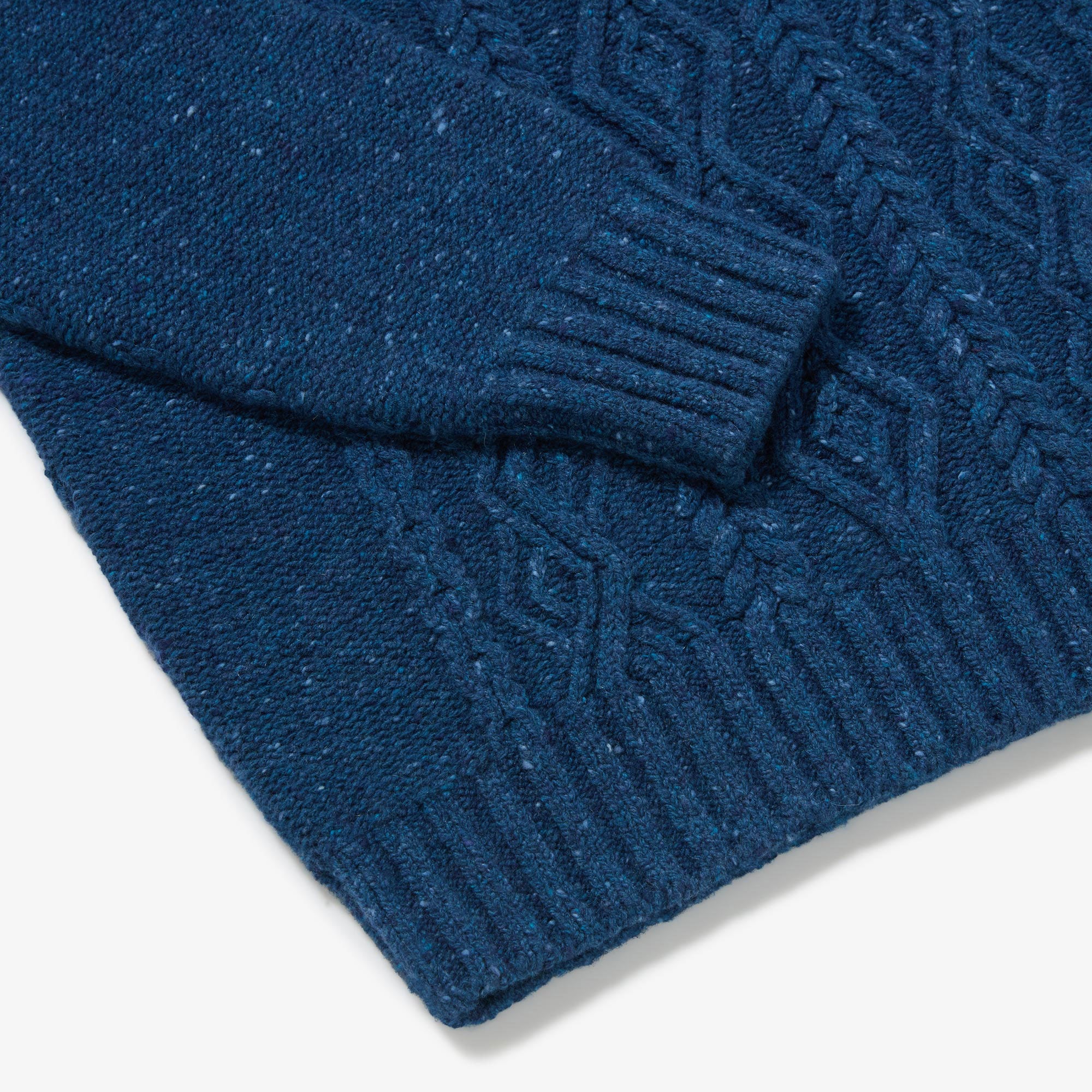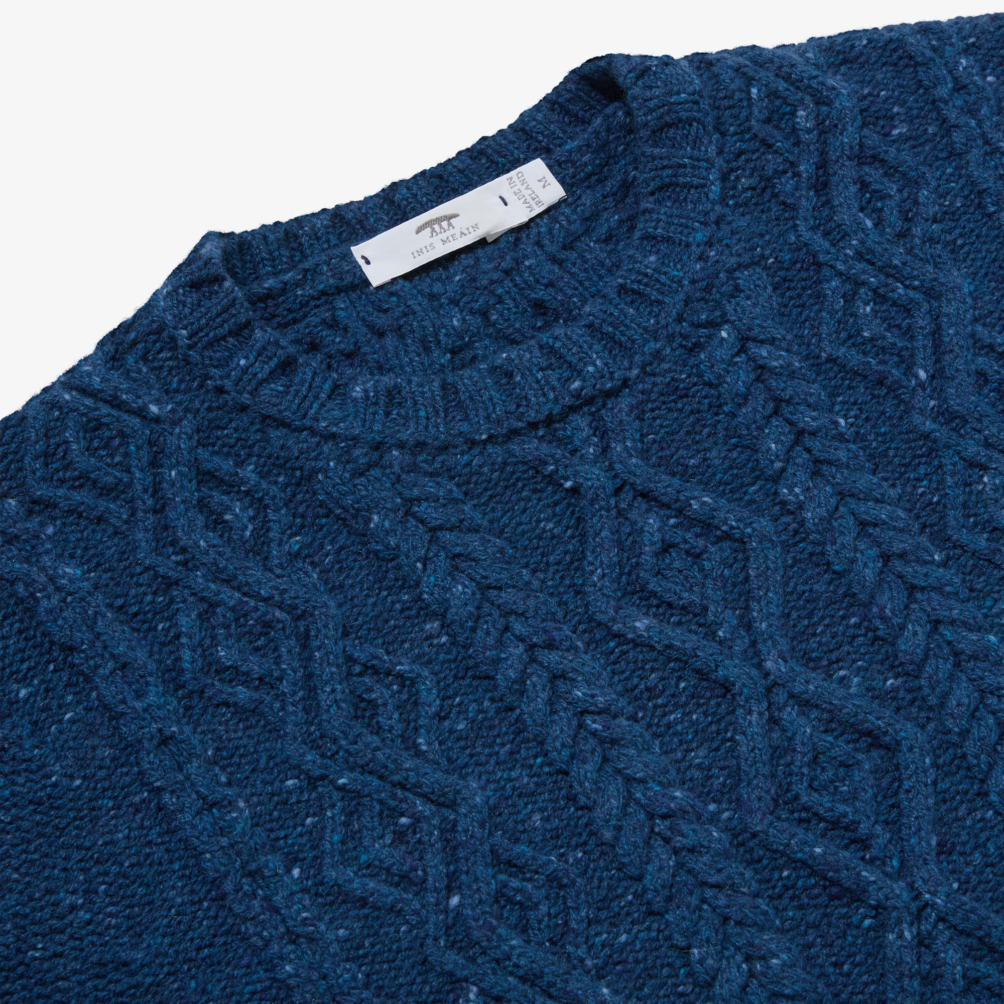 Newly available in Blue Fleck, a true maritime shade with electric blue and white highlights; joining Navy, Beige and Red - classic colours each elevated with their own mixture of tiny bright flecks in warm tones. Designed, made and hand-finished in our Aran Islands workshop. An Aran Sweater made in the only knitwear factory in the Aran Islands - a true Aran from Aran.