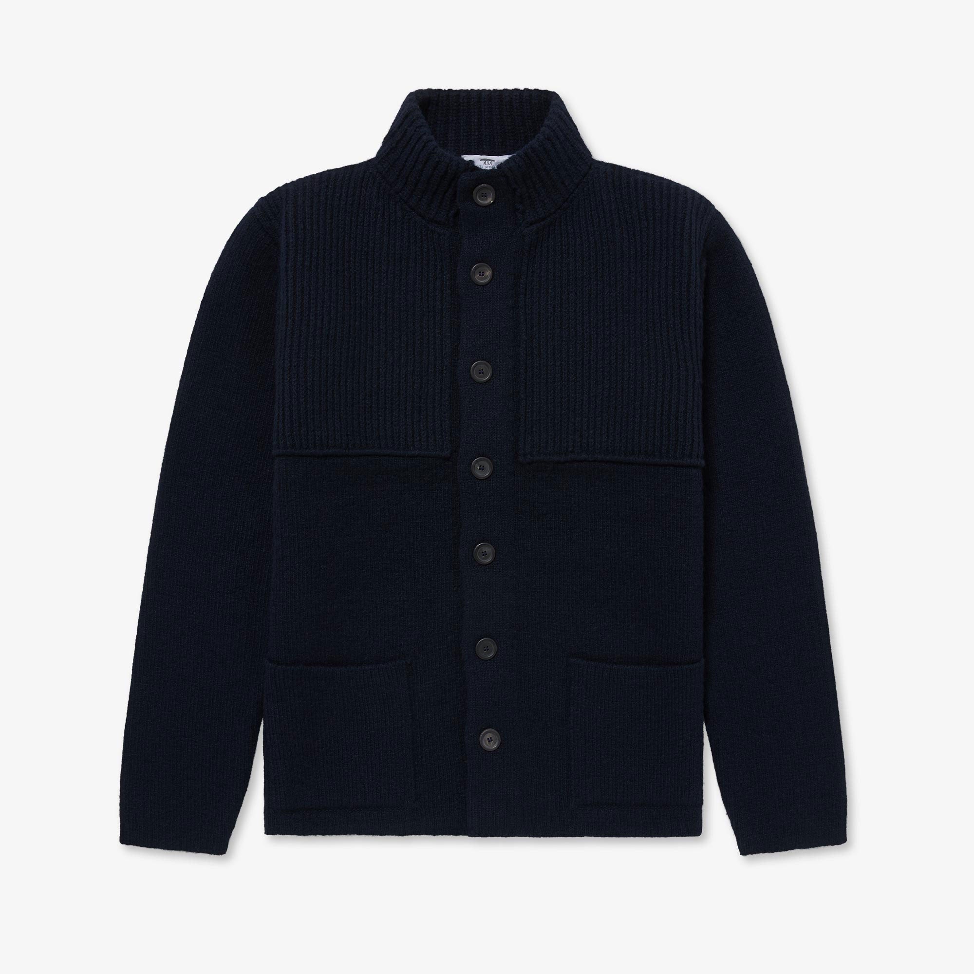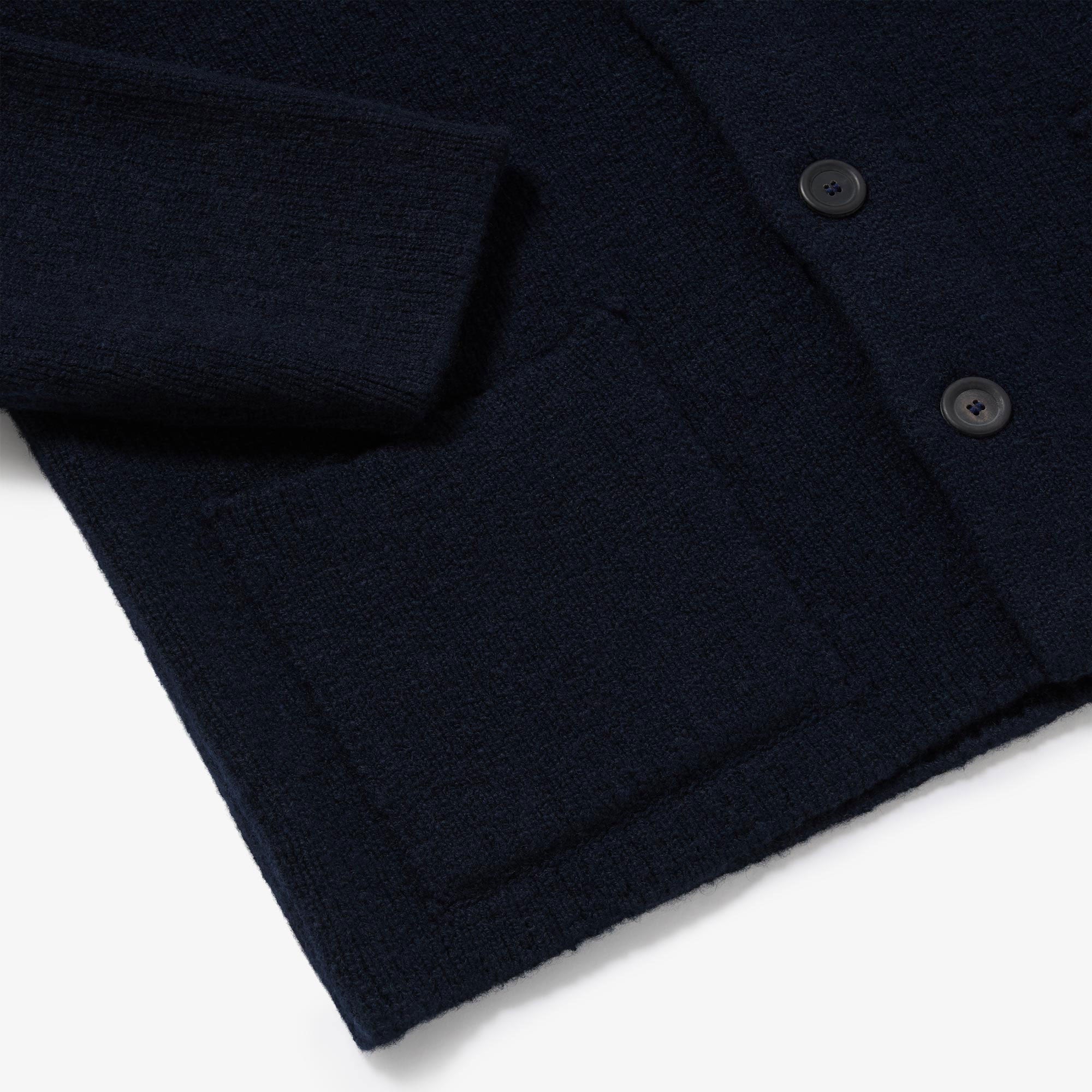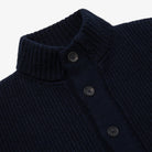 An old merino favourite in a new yarn composition. Our warmest piece to battle the wildest elements - the Cashmere Storm Jacket. With reinforced rib patches on the upper body, the Storm Jacket is the ultimate workwear piece designed for longevity and durability. Closely tied natural horn buttons right through a doubled up stand collar ensure no draughts get in. Patch pockets are another feature on this labour of love that spends the most time of any piece in our artisan's hands. Knitted from super-premium Cashmere and the finest of Merino yarn from Italian heritage producer, Filati Biagioli Modesto, made to the highest European environmental standards using only organic dyes.