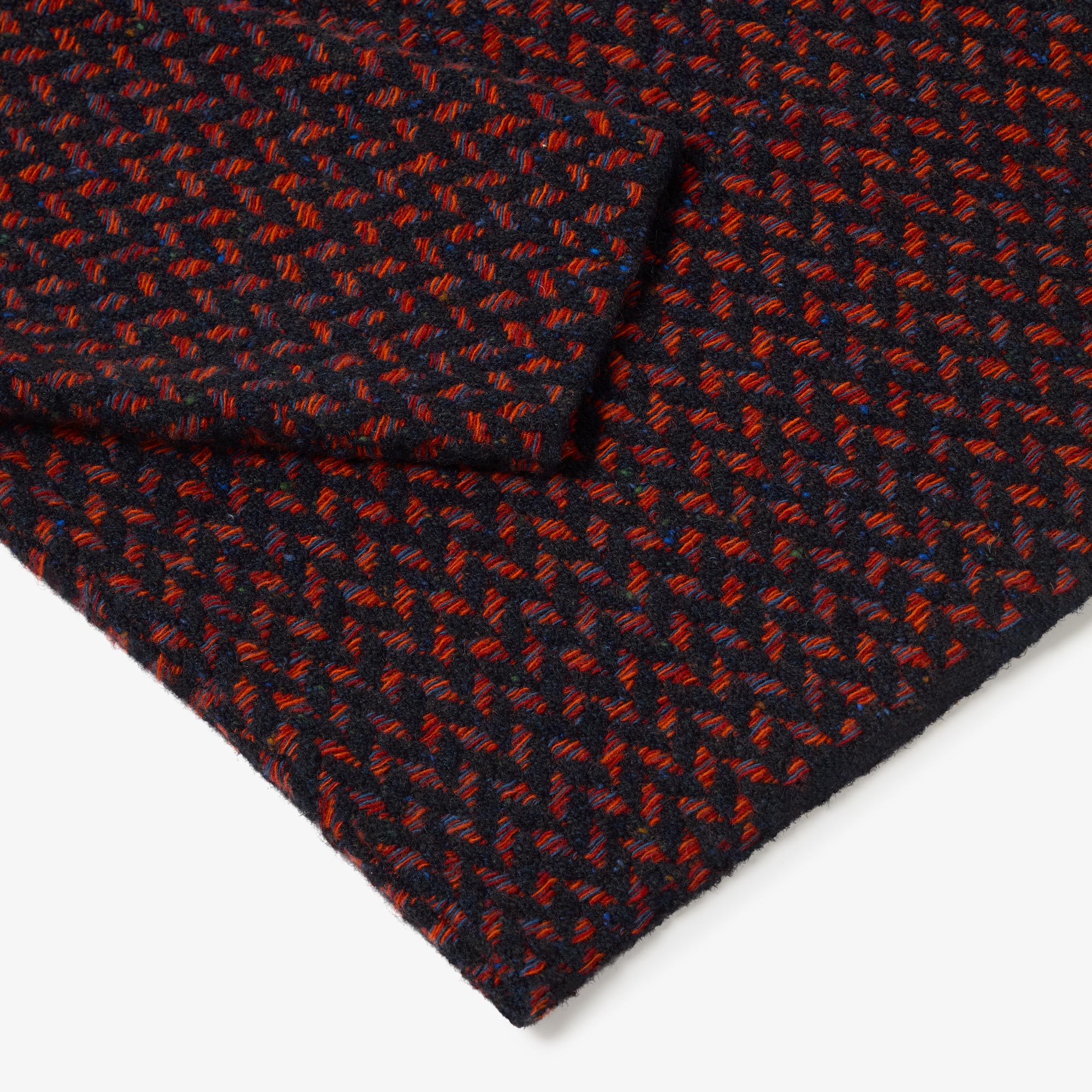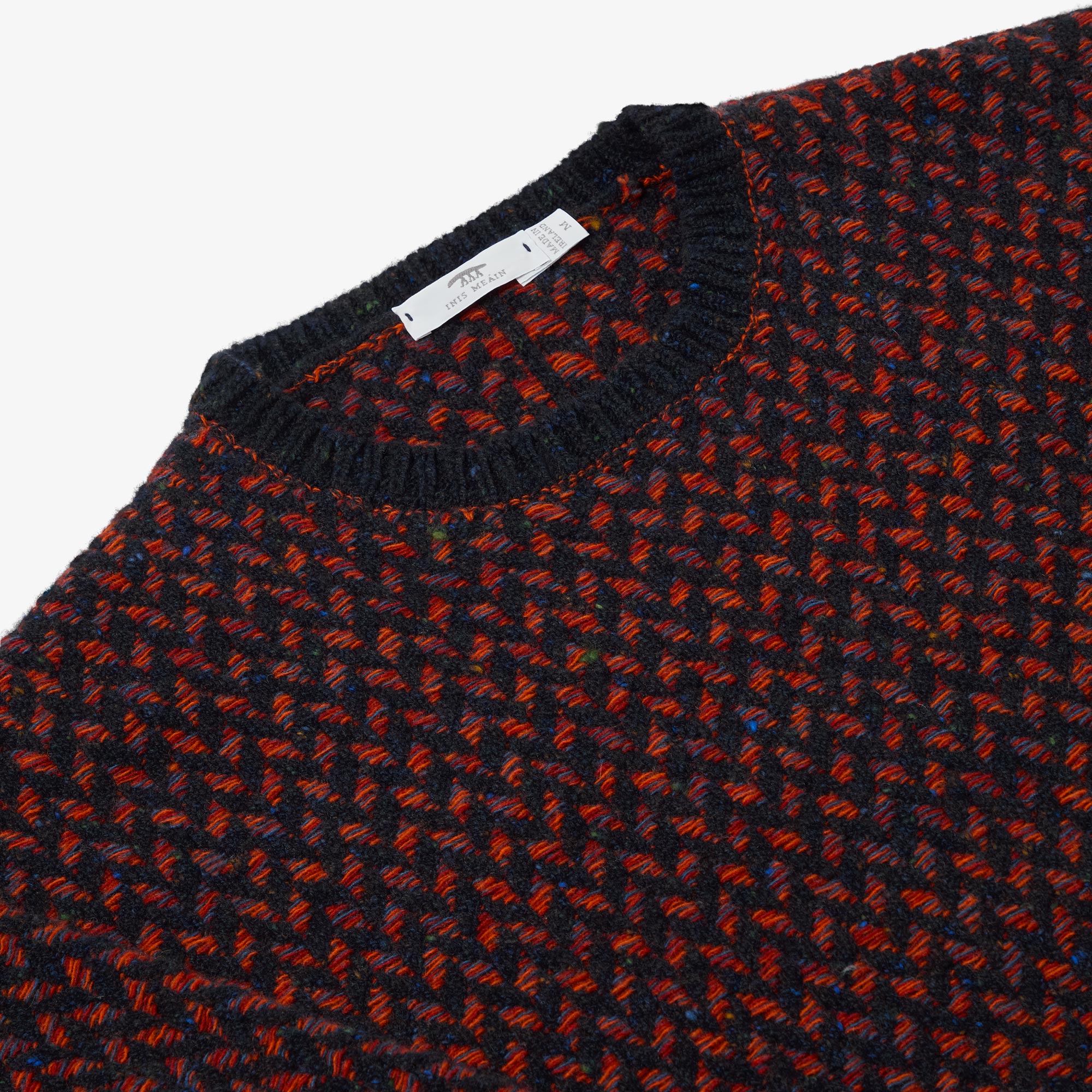 Newly available in Black-Charcoal, in Navy-Blue, an ode to the sea, and in Navy-Orange - intricately rich colour combinations that showcase the knit and weave characteristics beautifully. Always only available in the smallest of micro-batches due to the intense nature of knitting these challenging pieces. Designed, made and hand-finished in our Aran Islands workshop.