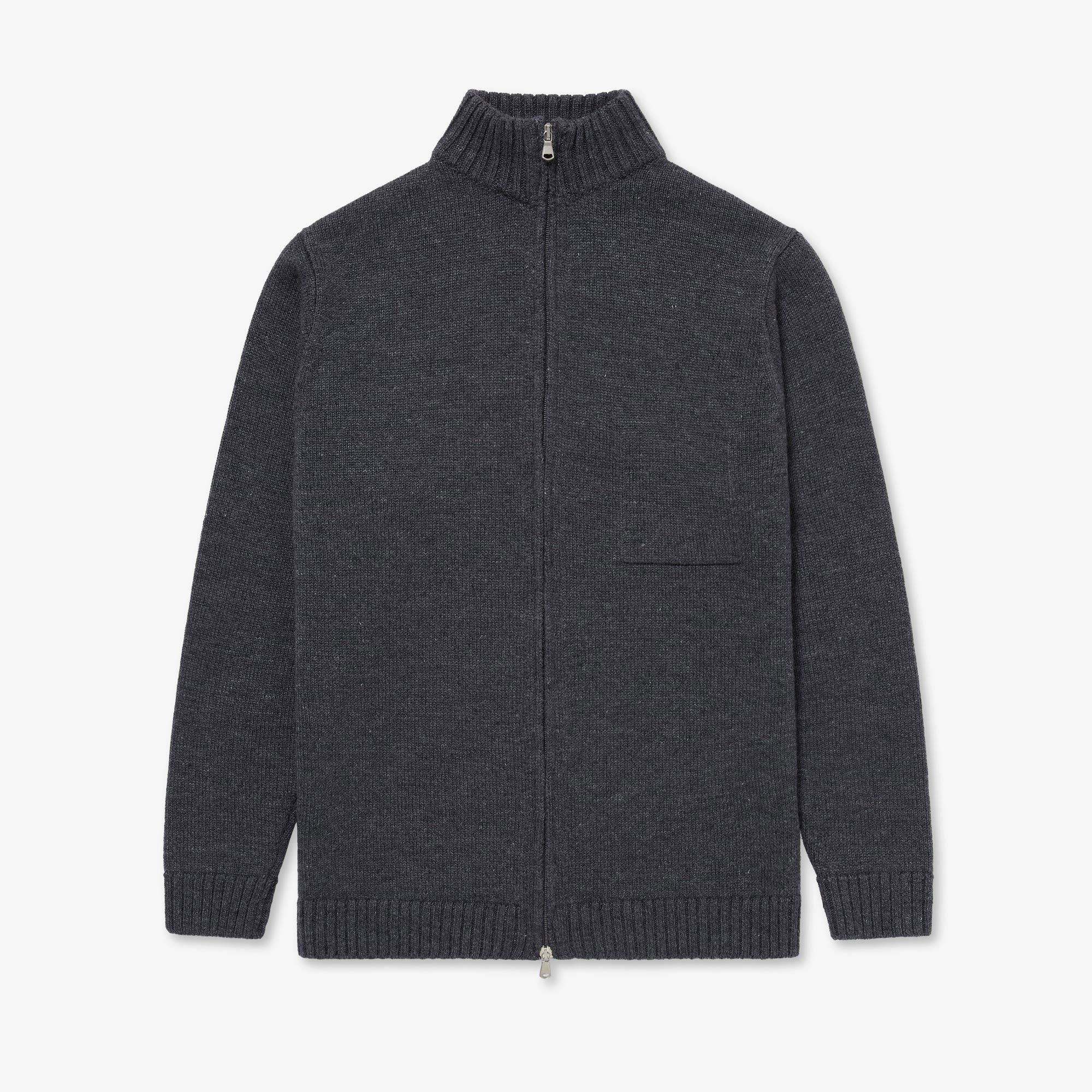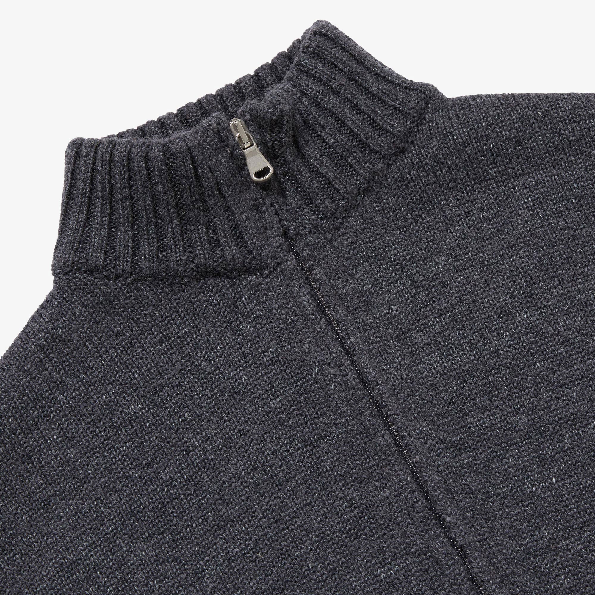 A brand new yarn composition for Autumn/Winter 2025 is our in-house blend of superfine Merino and Linen. The linen serves to make the garment more airy and breathable and creates a beautifully nuanced colour-shading effect as the Linen strands catch the light differently to the Merino. It also creates a depth of feel and texture with little bursts of crispness scattering amongst the Merino softness. A new style for this season, the Textured Zip Jacket is a refined yet relaxed go-to.