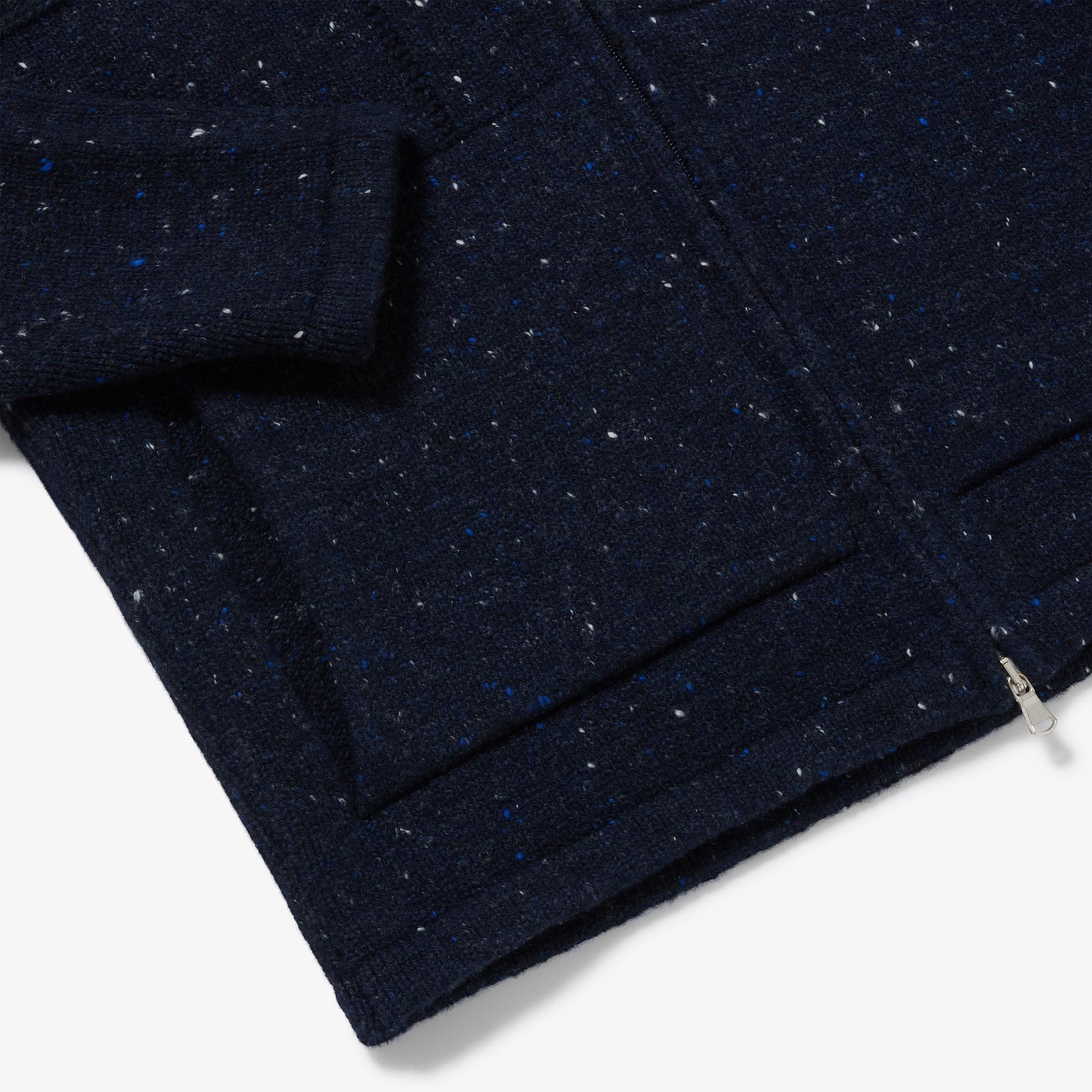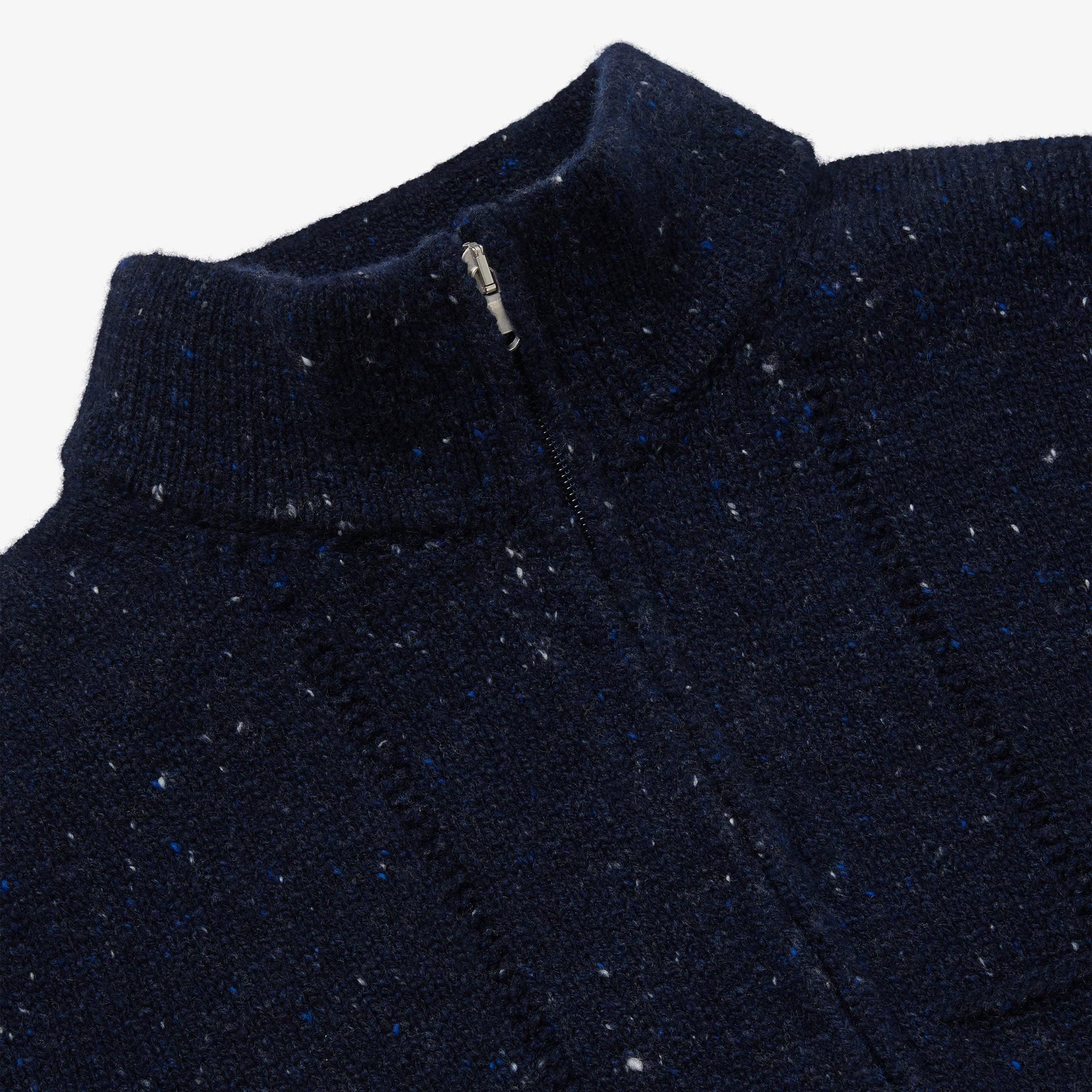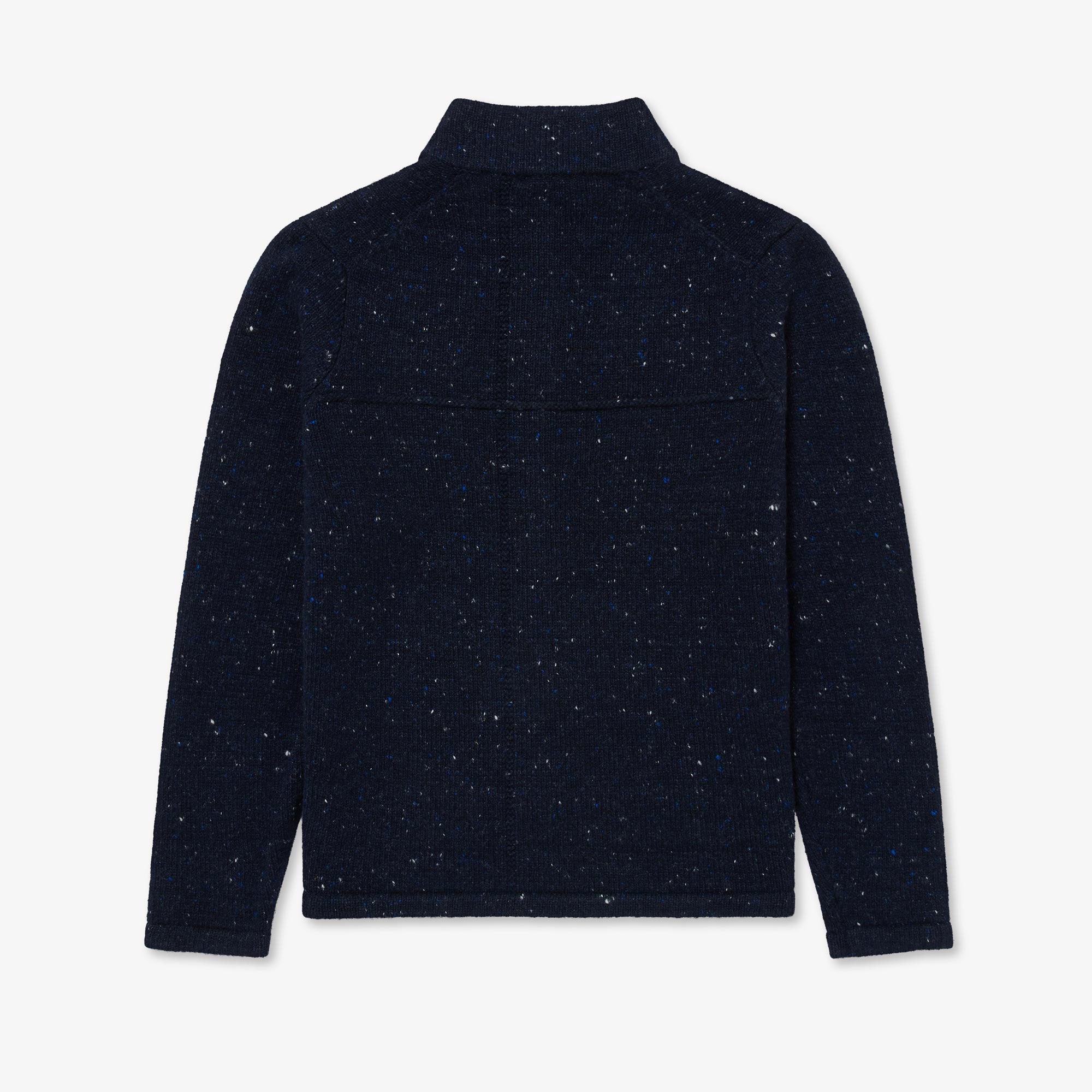 Available in Navy Fleck, a medium navy with electric blue and white highlight flecks, and Green Fleck, a deep khaki-toned yarn with varying shades of virescent flecks. Designed, made and hand-finished in our Aran Islands workshop.