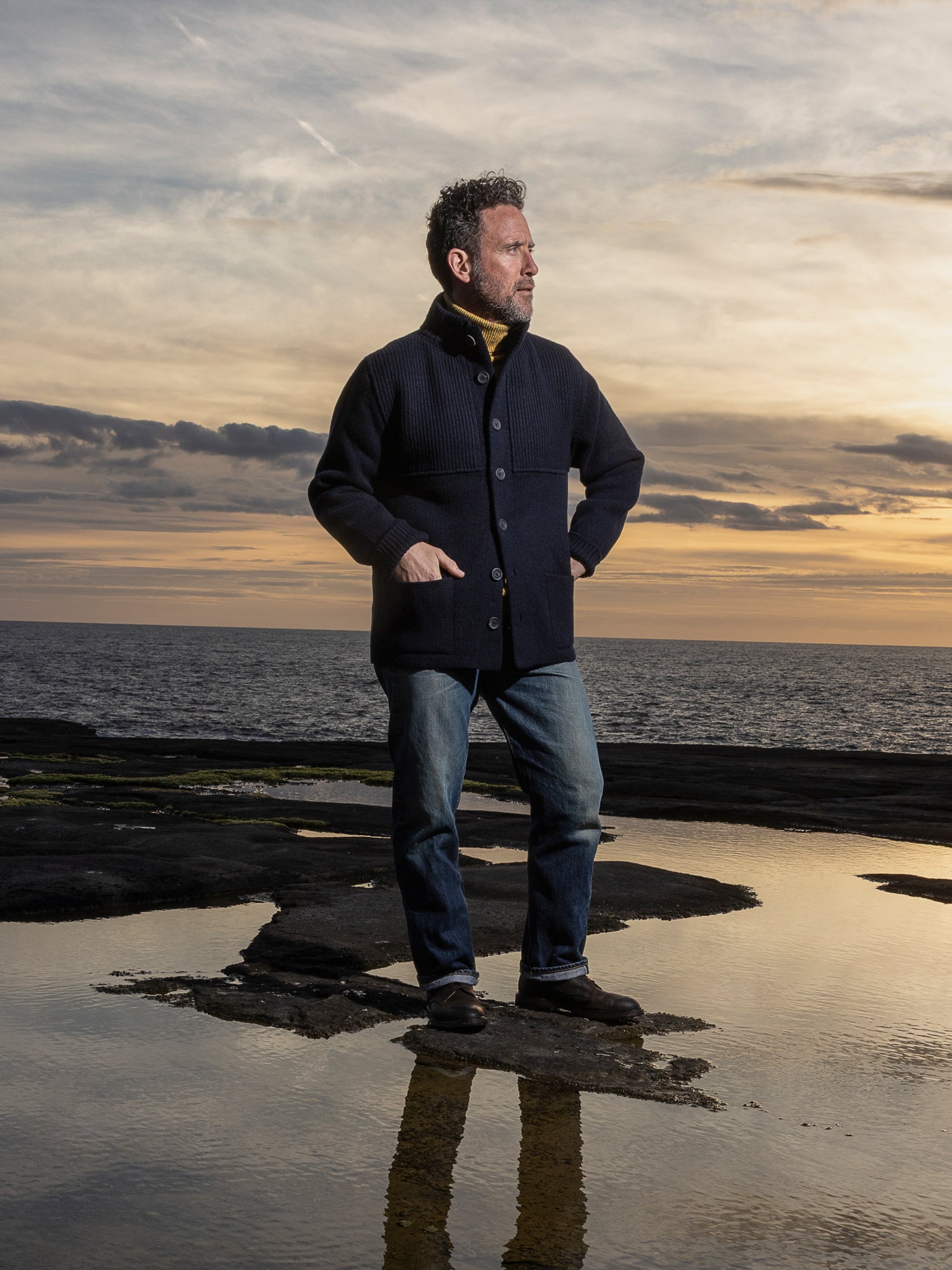 An old merino favourite in a new yarn composition. Our warmest piece to battle the wildest elements - the Cashmere Storm Jacket. With reinforced rib patches on the upper body, the Storm Jacket is the ultimate workwear piece designed for longevity and durability. Closely tied natural horn buttons right through a doubled up stand collar ensure no draughts get in. Patch pockets are another feature on this labour of love that spends the most time of any piece in our artisan's hands. Knitted from super-premium Cashmere and the finest of Merino yarn from Italian heritage producer, Filati Biagioli Modesto, made to the highest European environmental standards using only organic dyes.
