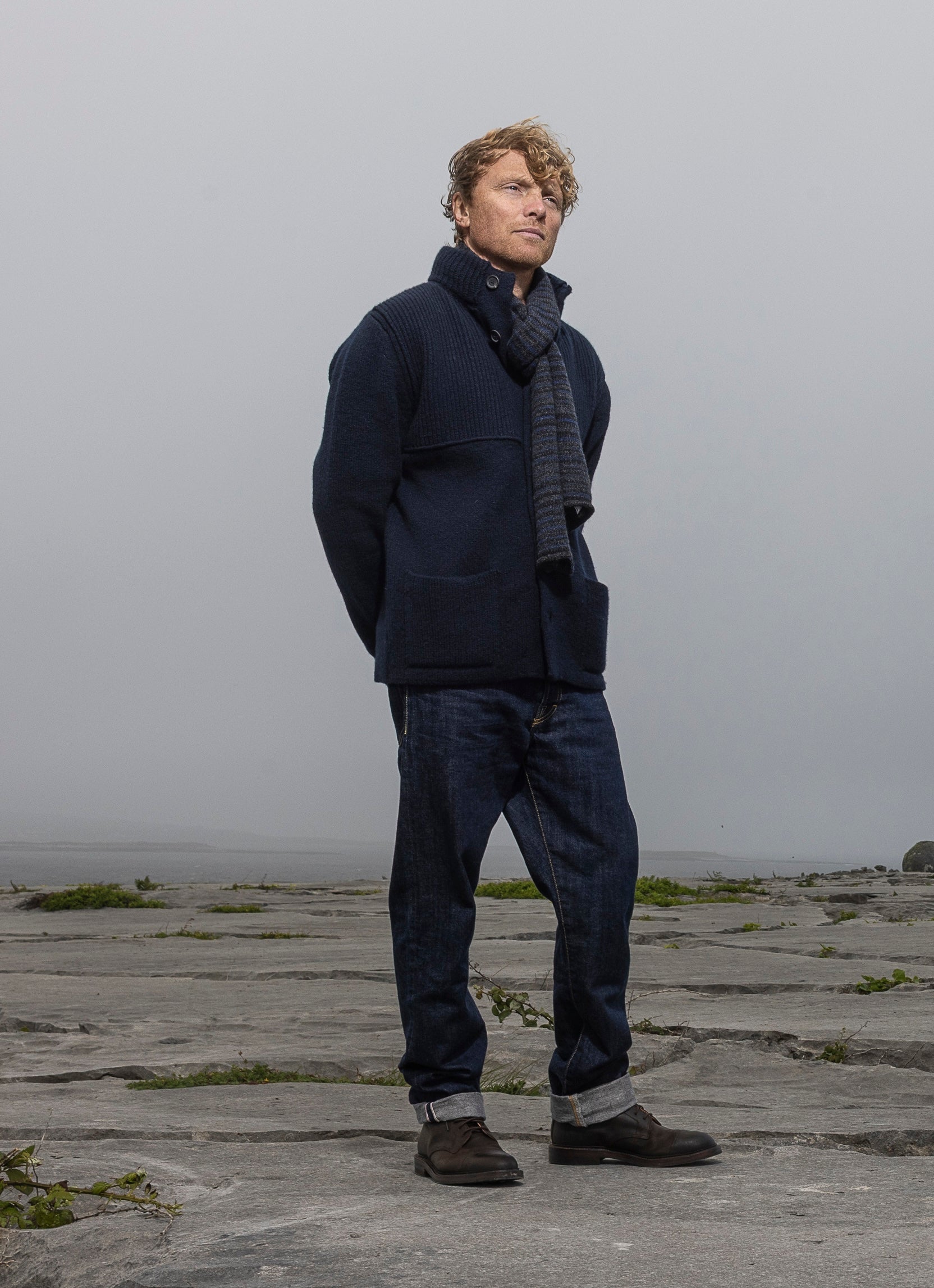 Available in dark marine Navy and Red Fleck - a warm crimson with subtle orange and amber highlights. An Inis Meáin original design and signature Aran workwear piece. Designed, made and hand-finished in our Aran Island's workshop.