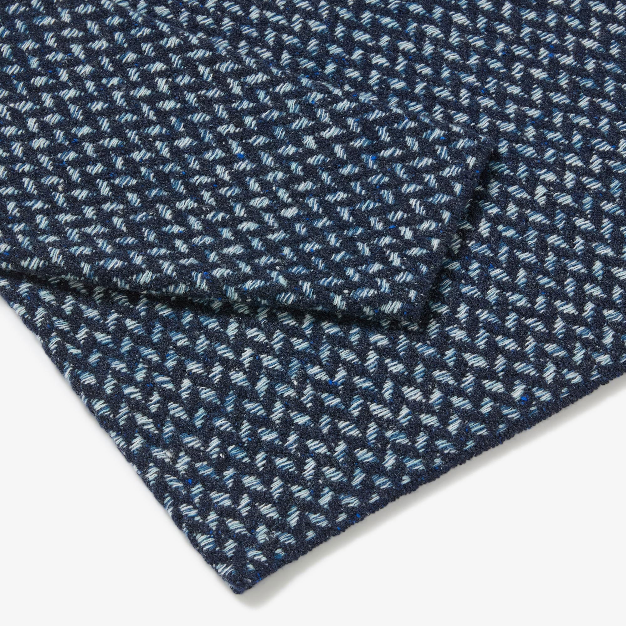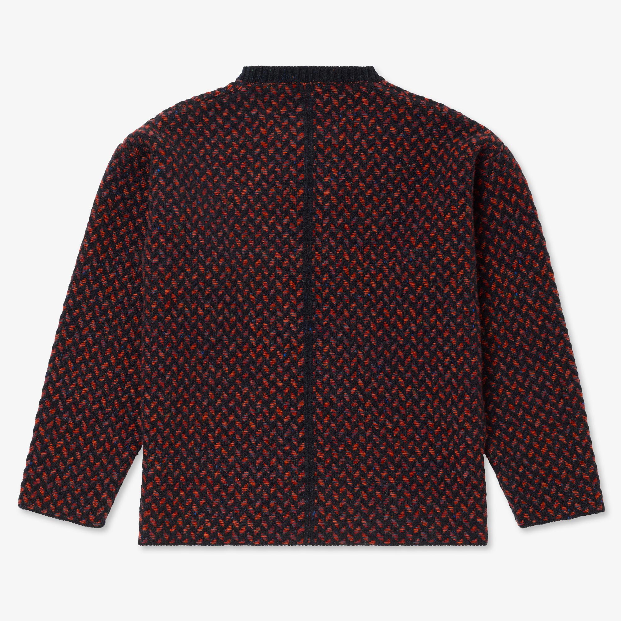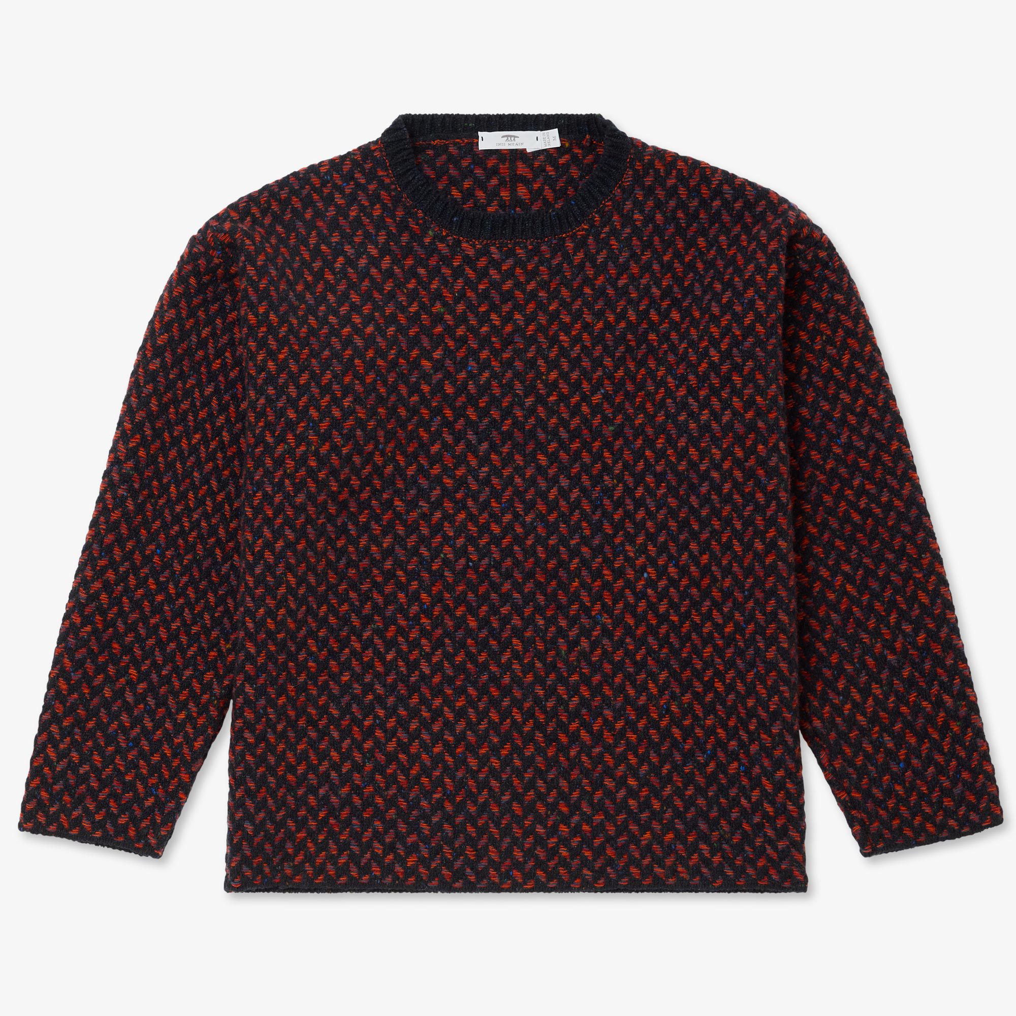 Newly available in Black-Charcoal, in Navy-Blue, an ode to the sea, and in Navy-Orange - intricately rich colour combinations that showcase the knit and weave characteristics beautifully. Always only available in the smallest of micro-batches due to the intense nature of knitting these challenging pieces. Designed, made and hand-finished in our Aran Islands workshop.