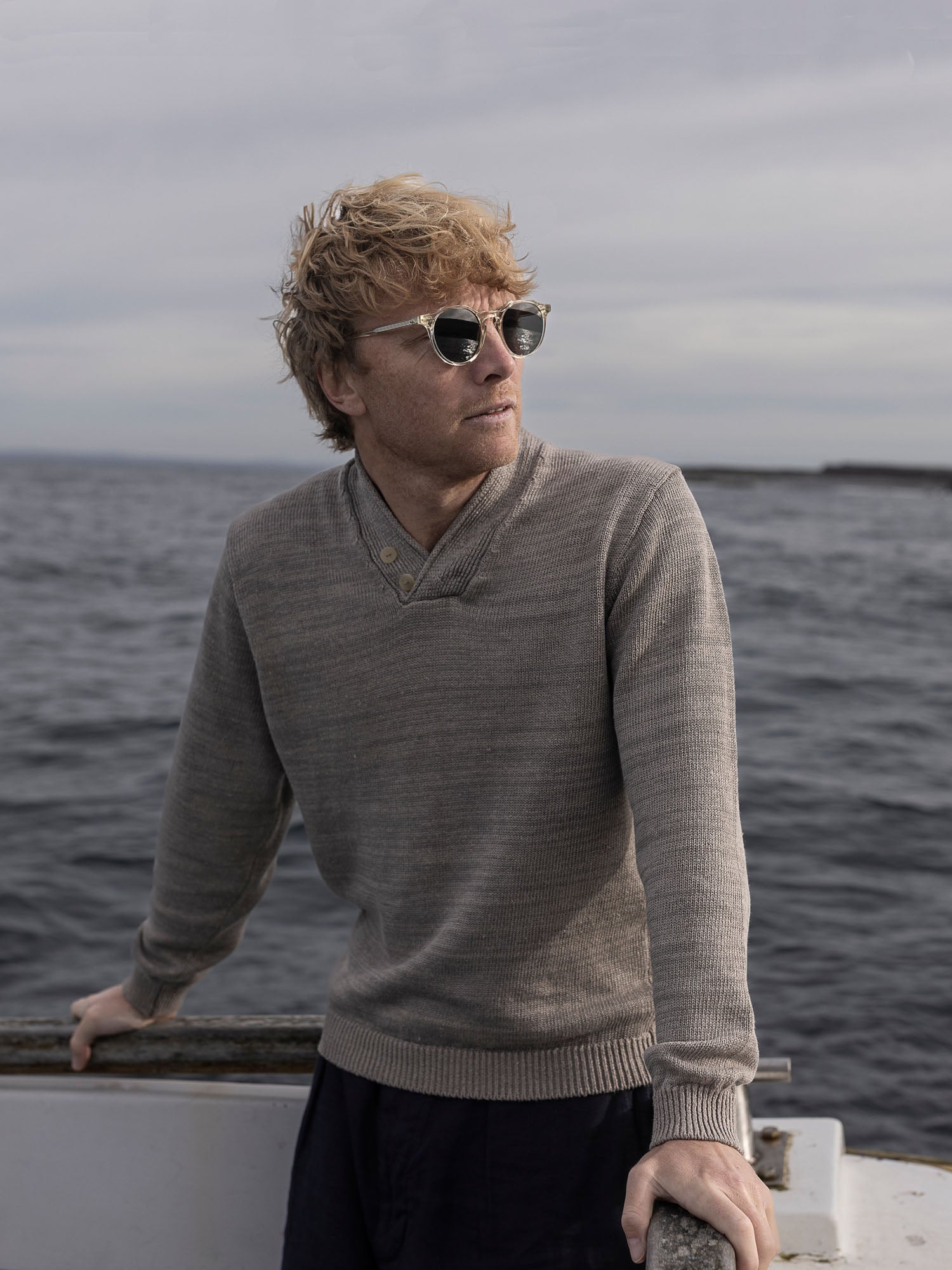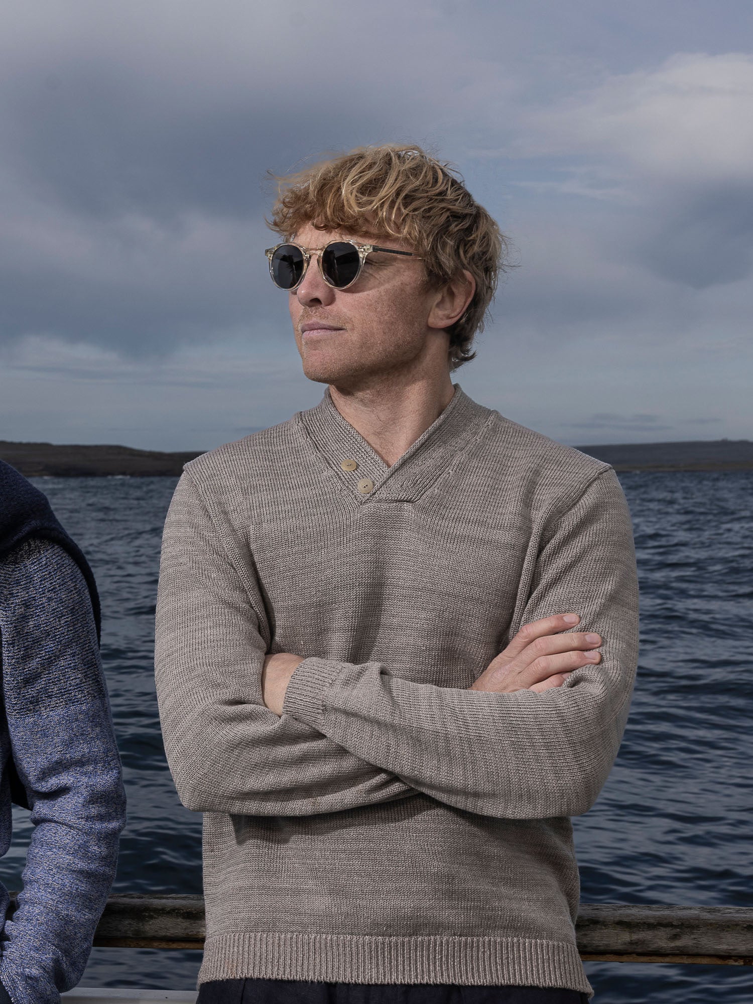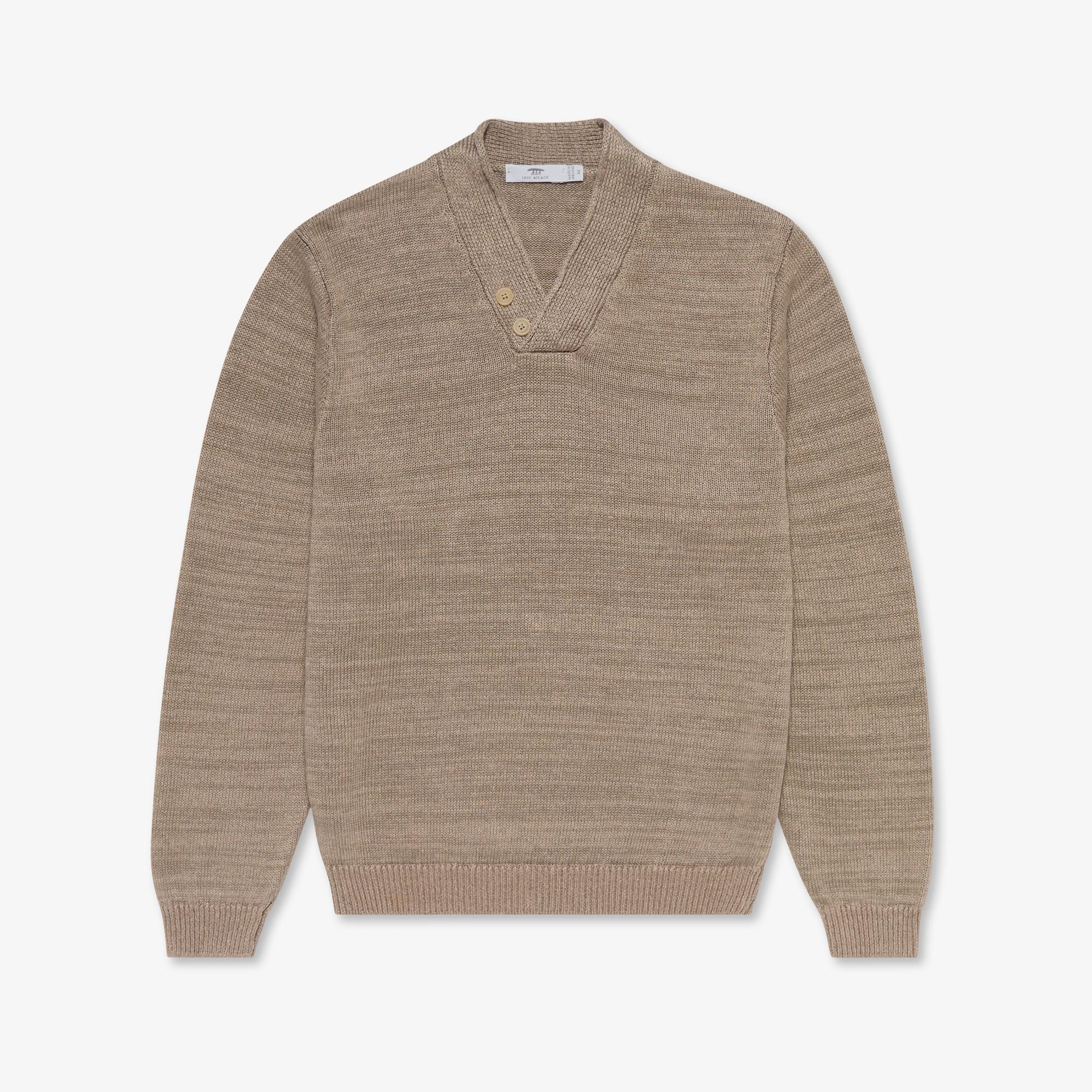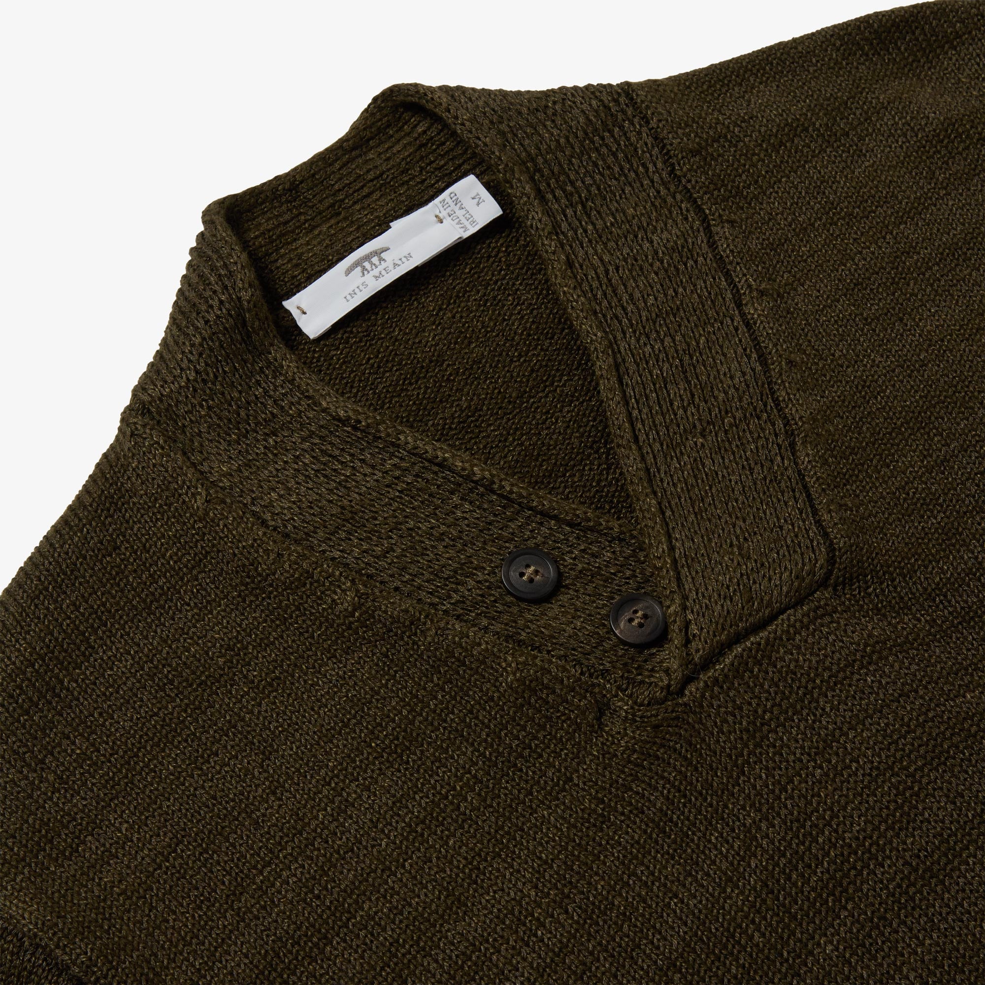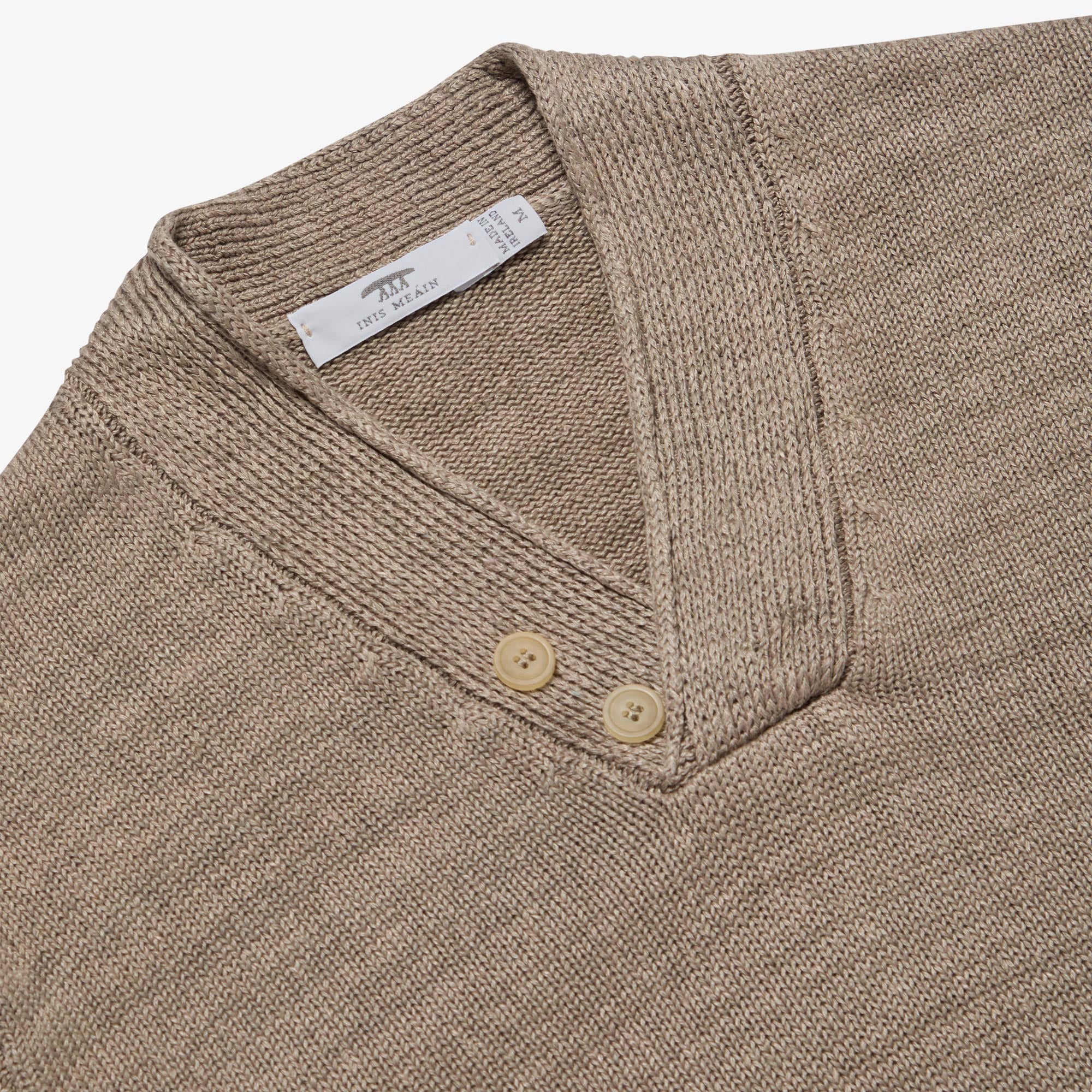 Cead is an early form of hurling played only on Inis Meáin and only on St. Patrick’s Day! The Hurler V Neck, was created in celebration of this ancient game. Hurling is one of the oldest field games in the world, popular for at least 3000 years in Ireland with the first literary reference dating back to 1272 BC. This versatile piece has many distinctive features including a high V-neck formed by a wide 1x1 rib, with a crossover roll finish and two decorative horn buttons. Neat rib cuffs and hem complete this sporty style. European Masters of Linen quality guarantees European linen of the highest standard and traceability from field to yarn.