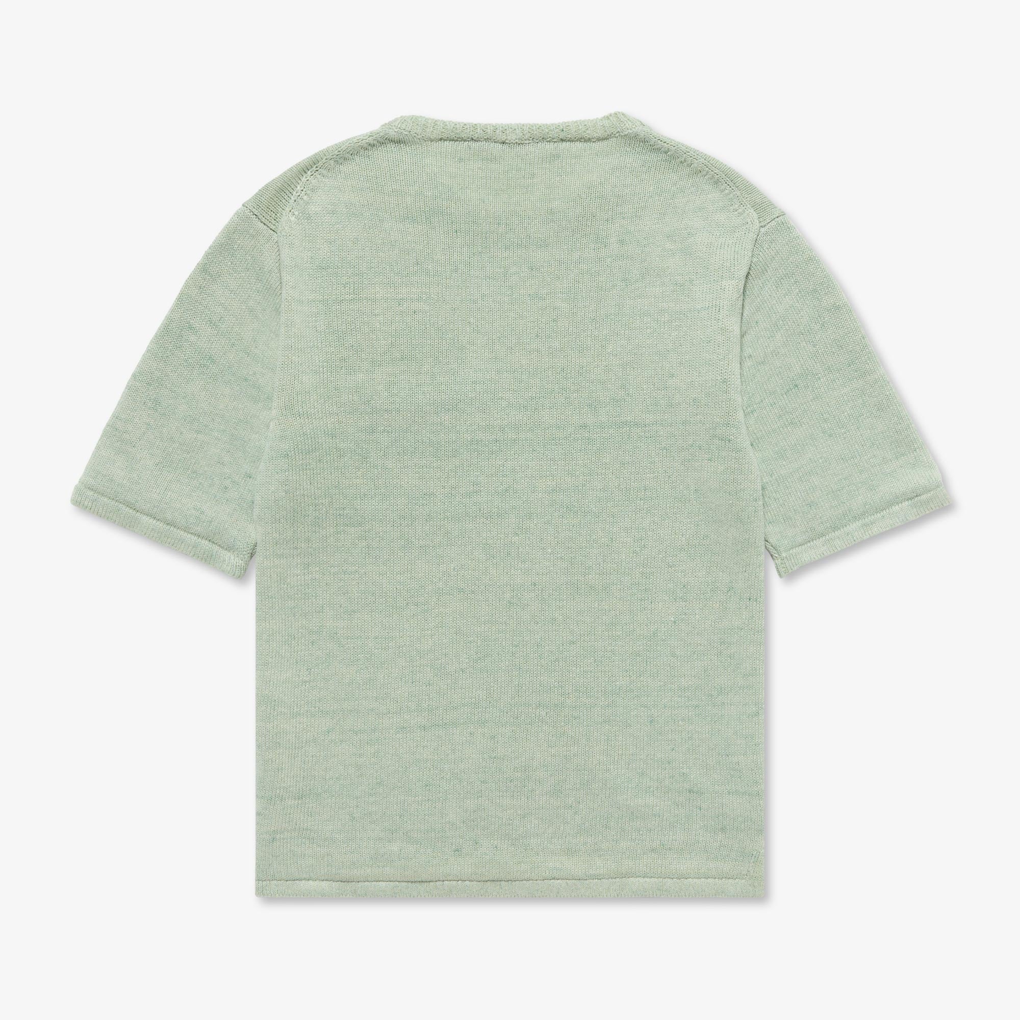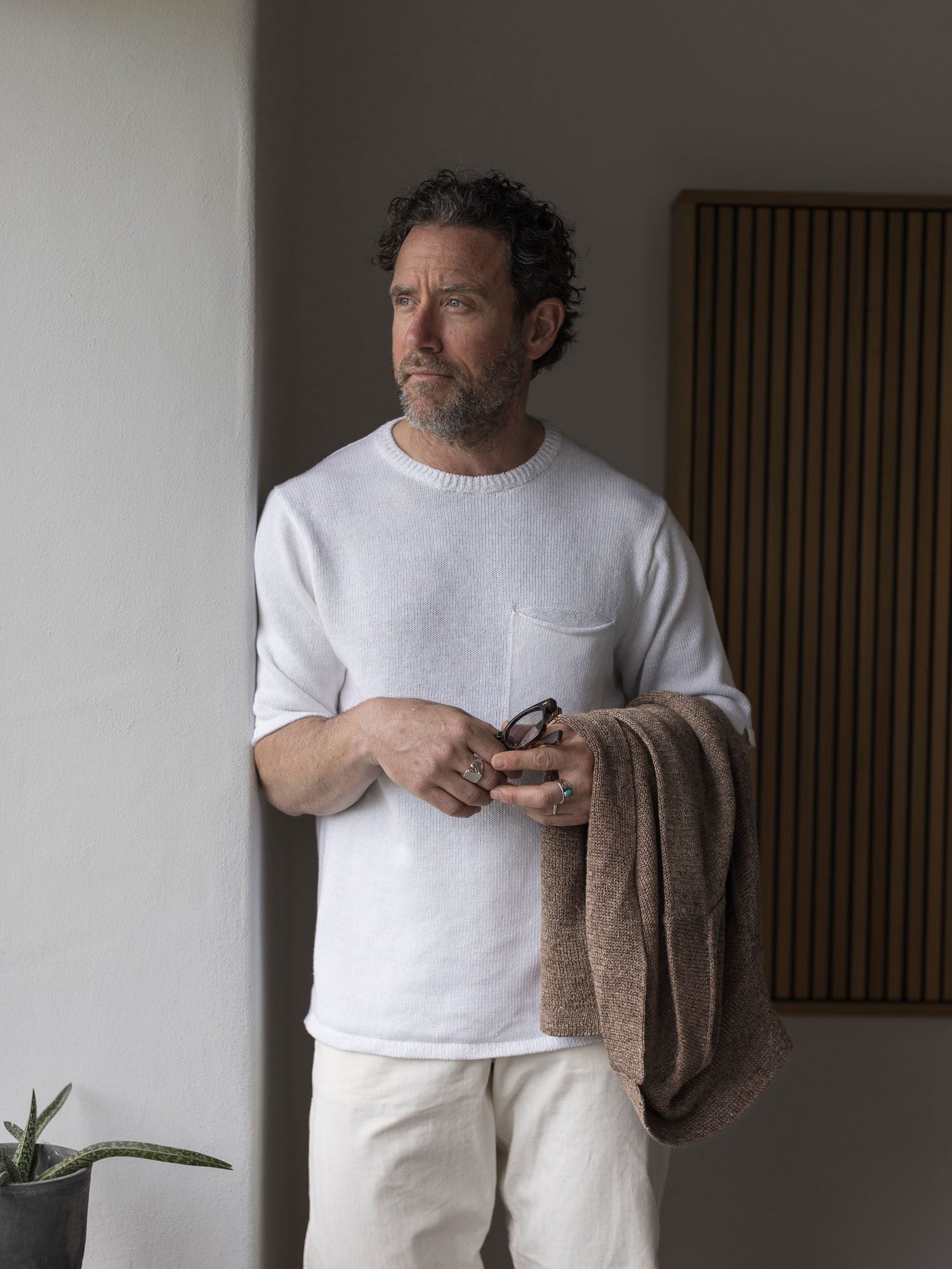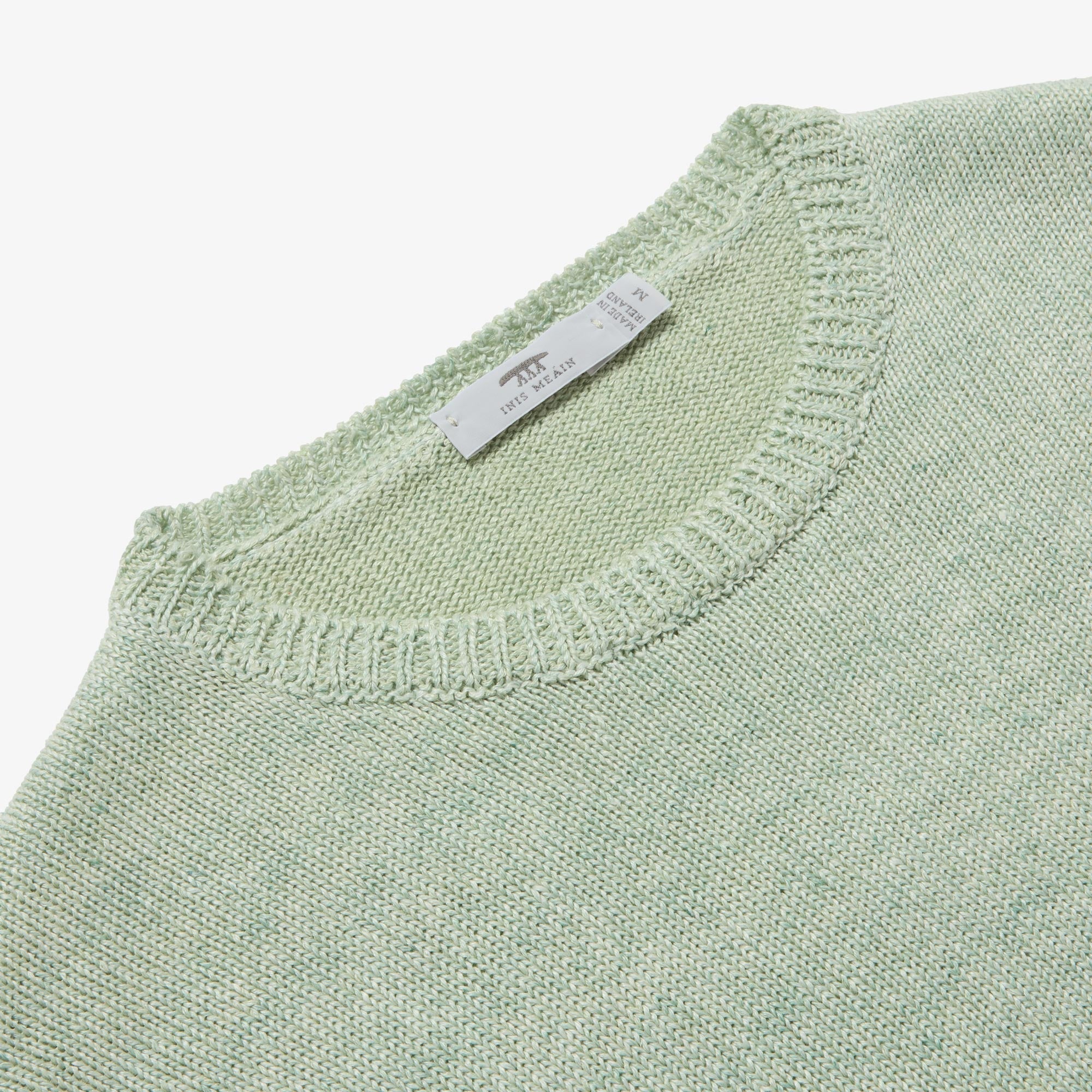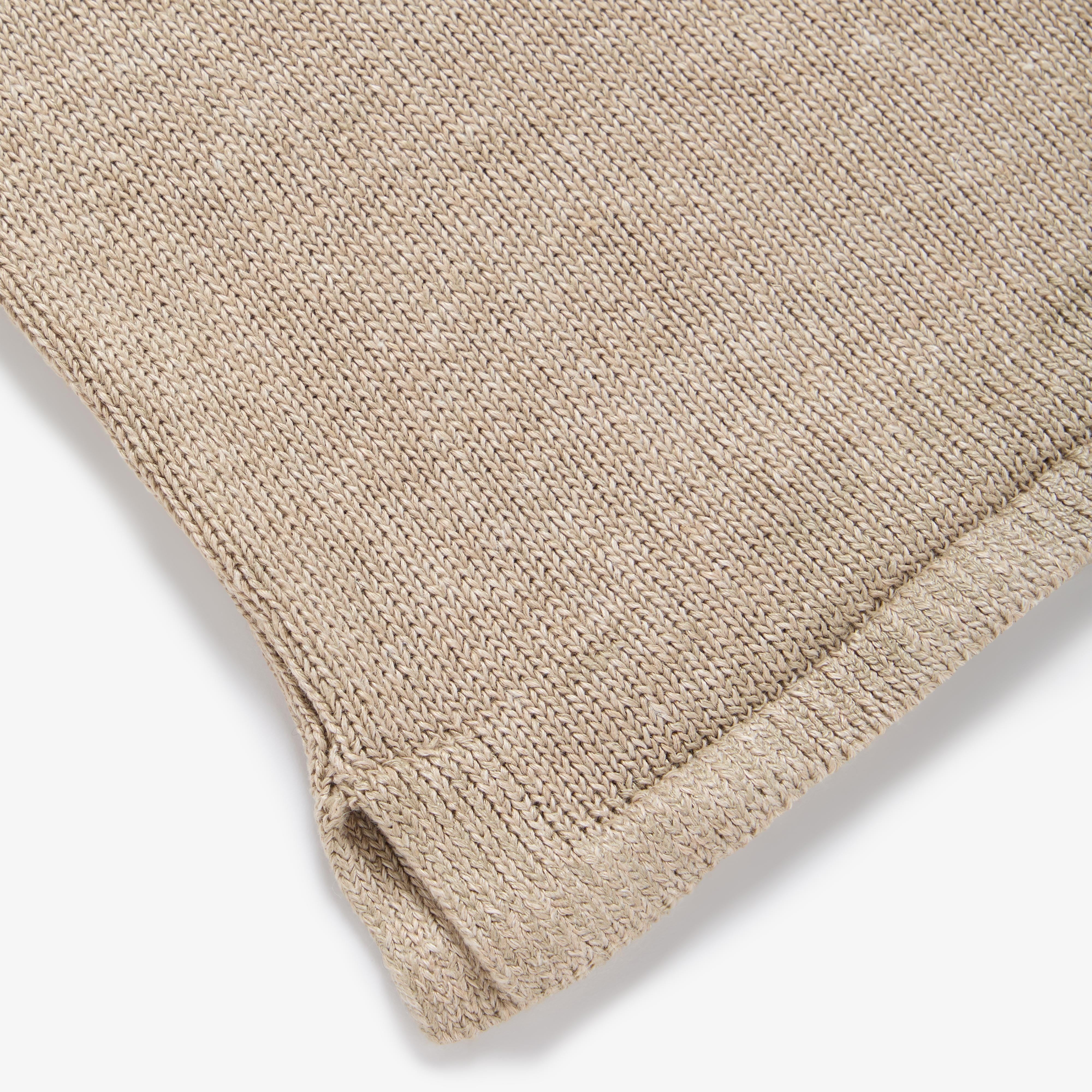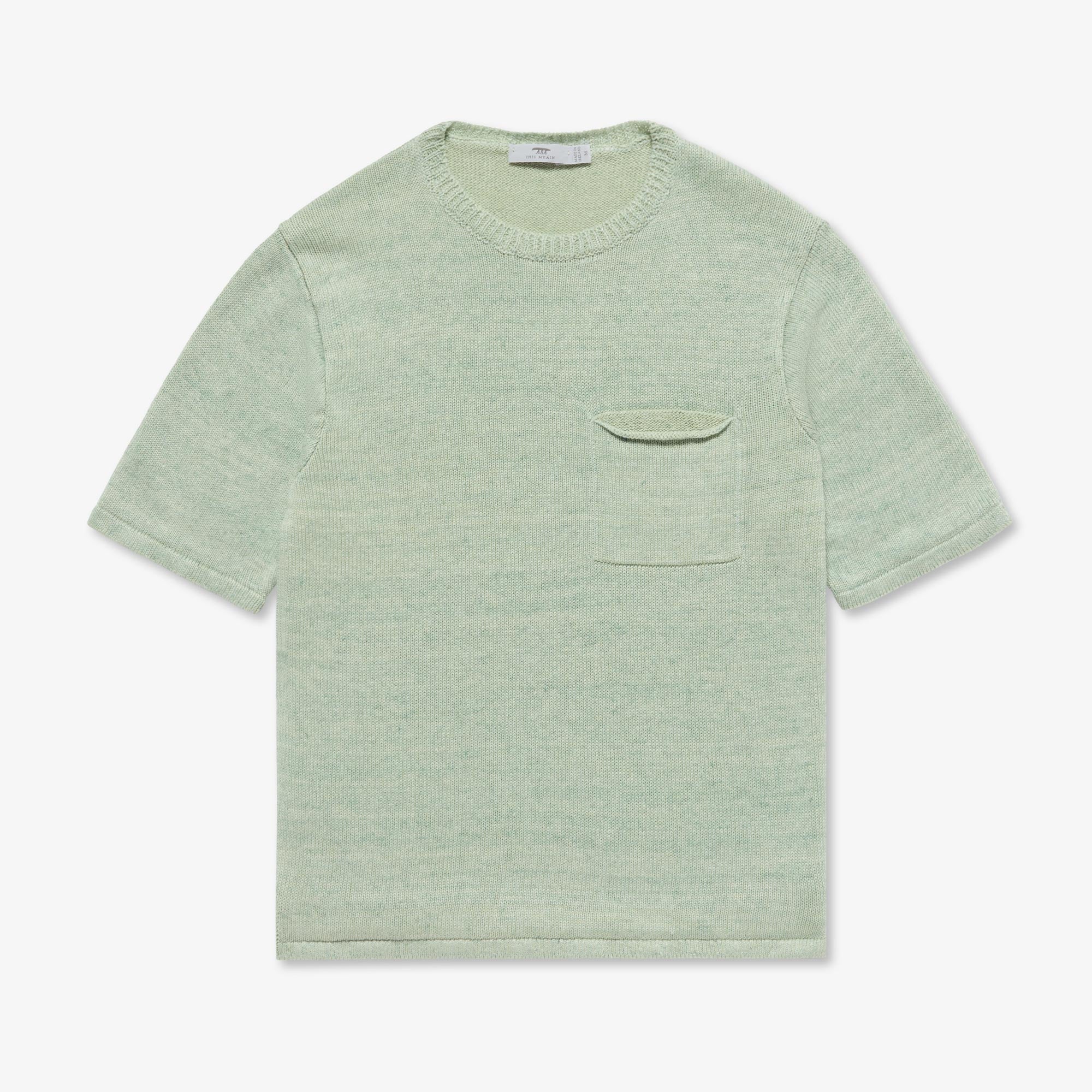 The Pocket TShirt knit in 100% natural linen is the ultimate Spring / Summer wardrobe essential. The thickness of yarn and the tension of knitting have been optimised for smooth styling and breathability, with air able to pass through tiny airways within the stitches. This is an elevated piece with subtle detailing including a refined rib neck trim, a relaxed roll down pocket showing the purl stitching on the inside, and vents on the tubular finish on the hem and arms to ensure optimum fit and comfort. European Masters of Linen quality guarantees European linen of the highest standard and traceability from field to yarn.