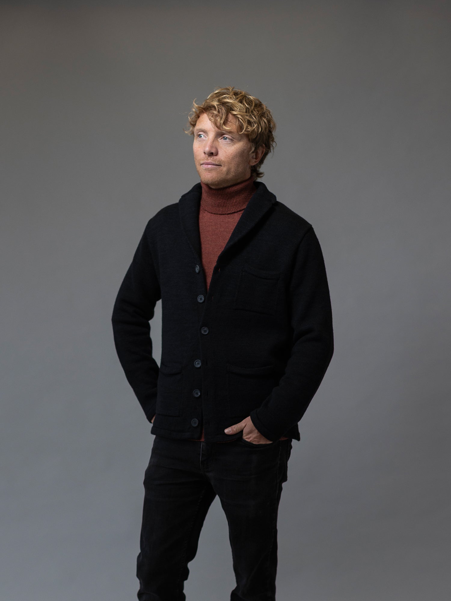 A brand new yarn composition for Autumn/Winter 2025 is our own blend of superfine Merino and Linen. The linen serves to make the garment more airy and breathable and creates a beautifully nuanced colour-shading effect as the Linen strands catch the light differently to the Merino. It also creates a depth of feel and texture with little bursts of crispness scattering amongst the Merino softness. This is our Financial Times' "iconic" Inis Meáin Pub Jacket created in this exciting new yarn blend for the first time. Offering the same multitude of features including three pockets, side vents and a smart revere collar, but once more elevated by the unique texture and colour nuances of this exceptional Merino/Linen blend.