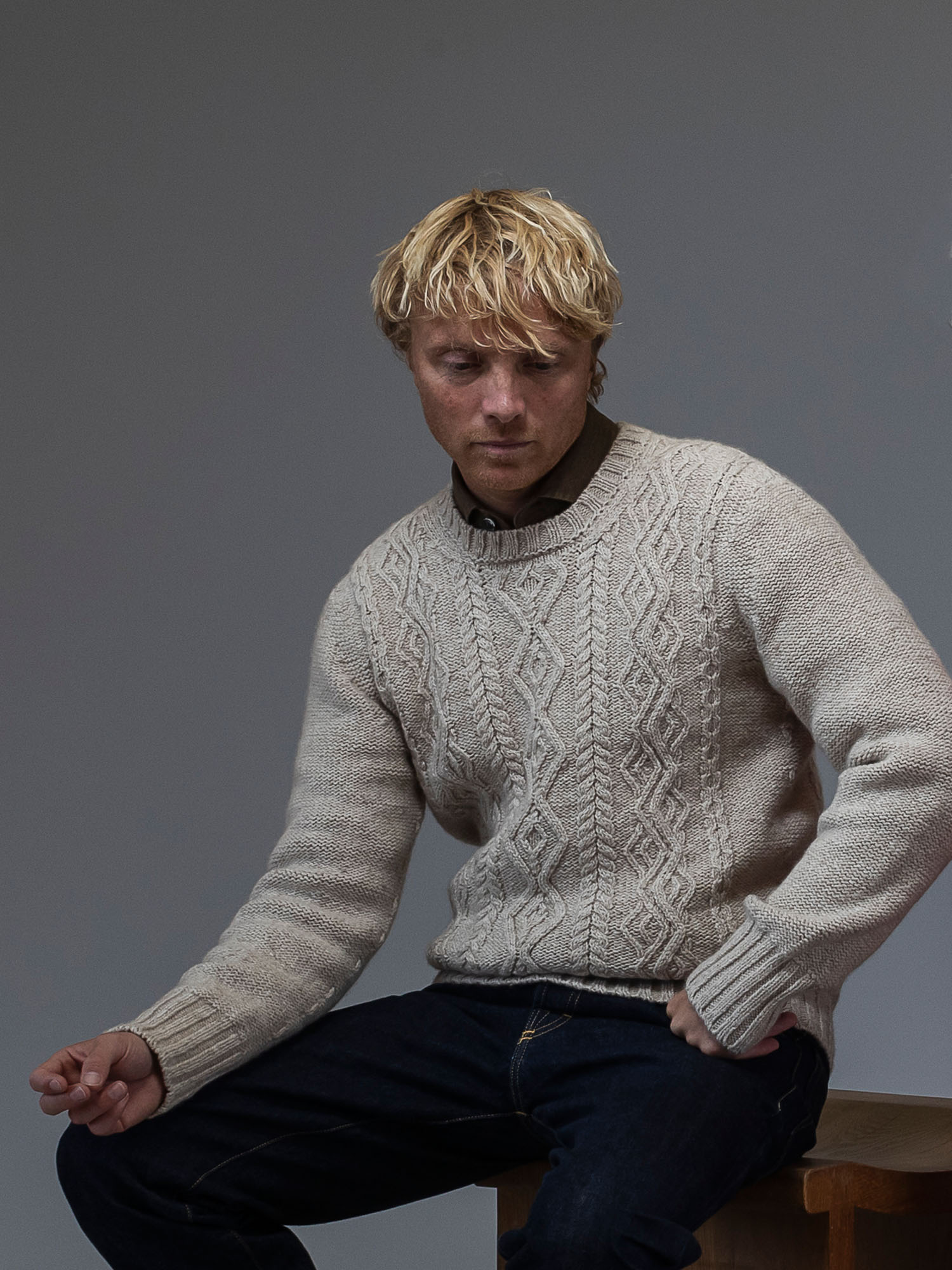 At Inis Meáin, we have been designing and making high quality knitwear, in the Aran Islands, for almost 50 years. In the process, we are helping to sustain an island community, and preserve an important part of Irish history and culture by making it accessible and relevant to a modern, worldly audience. Here we are presenting one of our most popular sweaters – the Celebration Aran Sweater, inspired by the highly decorated styles once prized as Sunday Best formal wear on the Island – in 100% super-premium Cashmere. Knit with the finest yarn from Italian heritage producer Filati Biagioli, who supply the most exceptional Cashmere to the world’s most coveted brands.