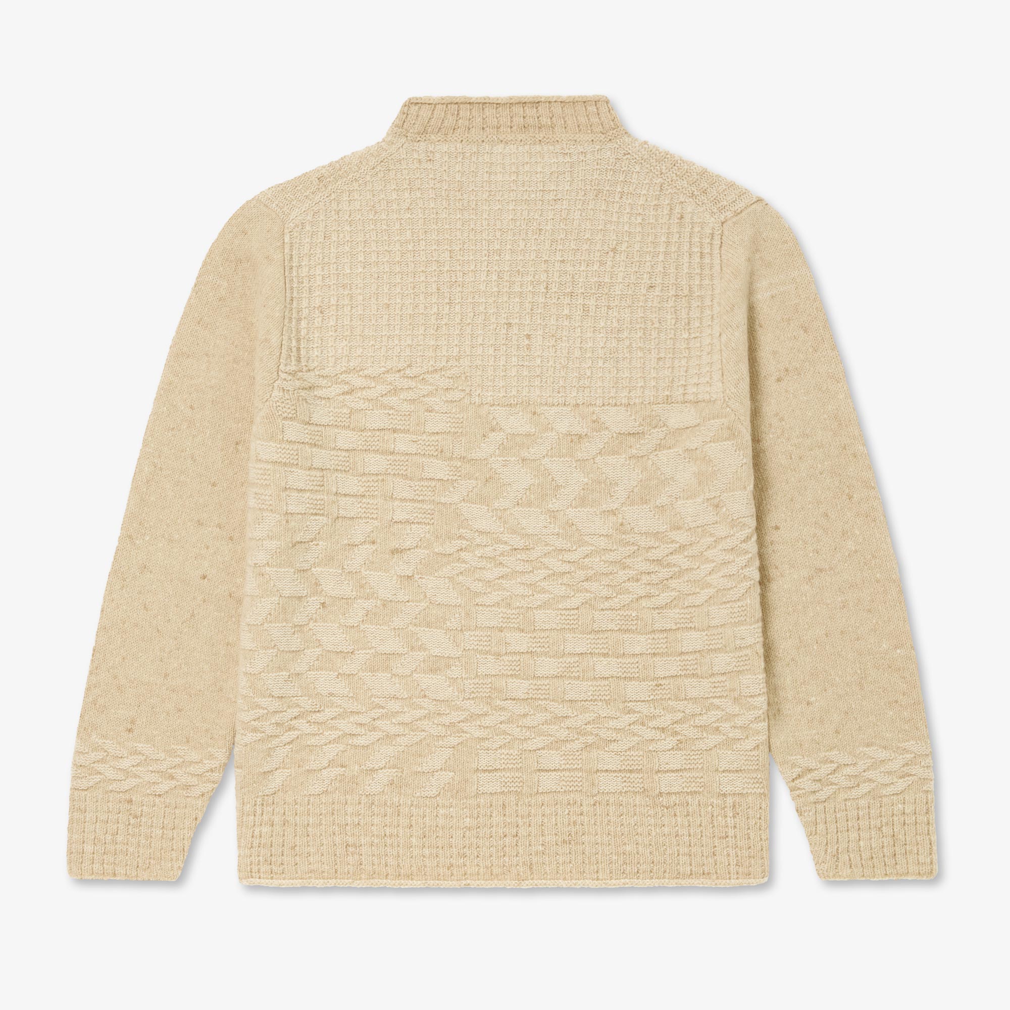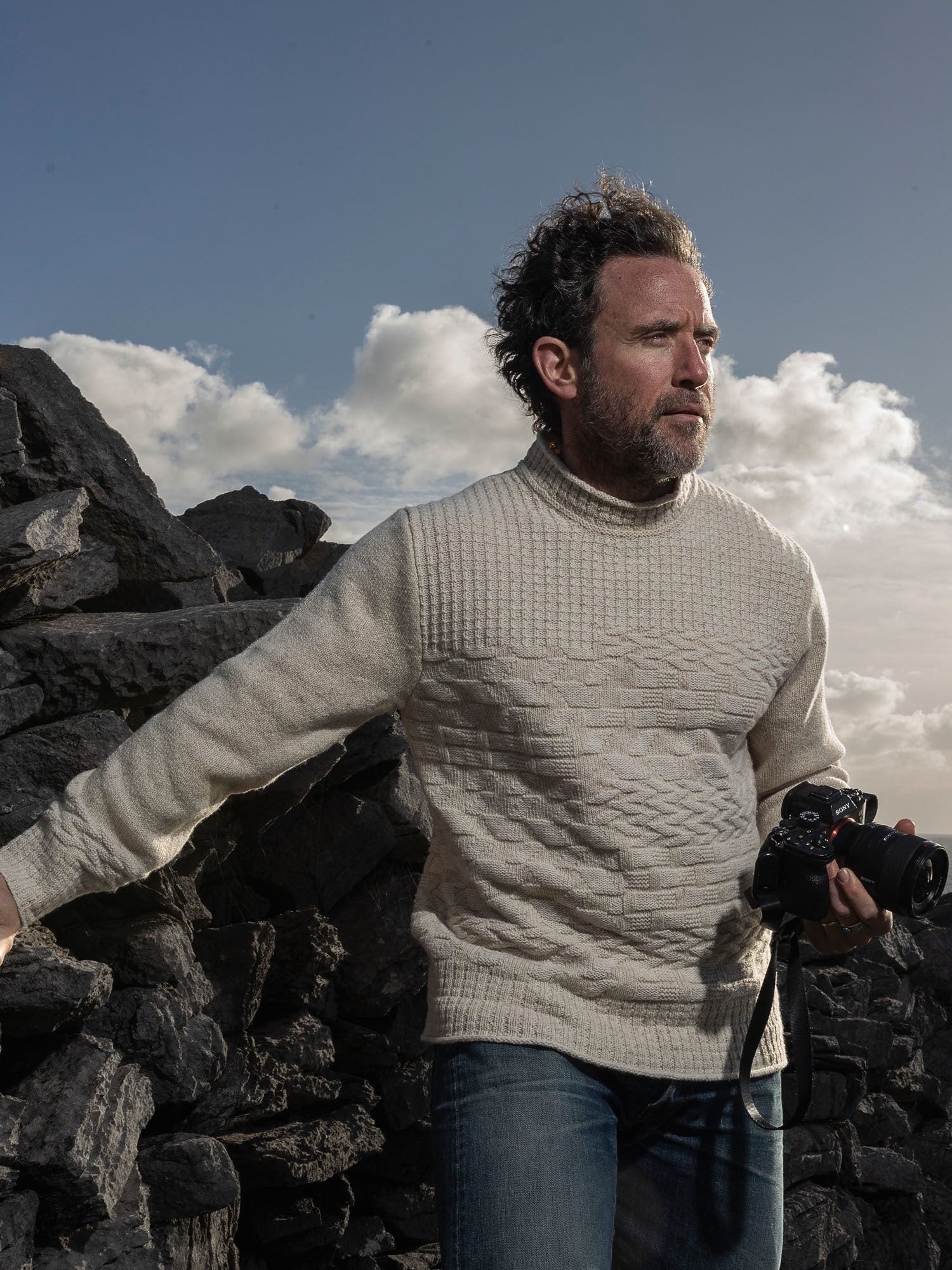 The craft of dry stone walling, a traditional island activity passed through the generations, is the inspiration for our Claíochaí, or stonewall, range. Each wall is built by hand using stones of random shapes and sizes. Our intricate design uses a variety of stitches to emulate the patterns created, such as plated moss stitch, plated moss rib stitch, plated caterpillar stitch, plated brick stitch, and embossed leaf stitch. The Claíochaí Mock Turtle Neck for Autumn/Winter 2024 is a reworking of a popular style from our almost 50 year old design archive in a new lighter weight for more wearability. With an abundance of stitch and colour interest, the variety of stitches combine to create loft and breathability. Crafted with super-premium Cashmere and Merino yarn from Italian heritage producer, Filati Biagioli Modesto, made to the highest European environmental standards using only organic dyes.