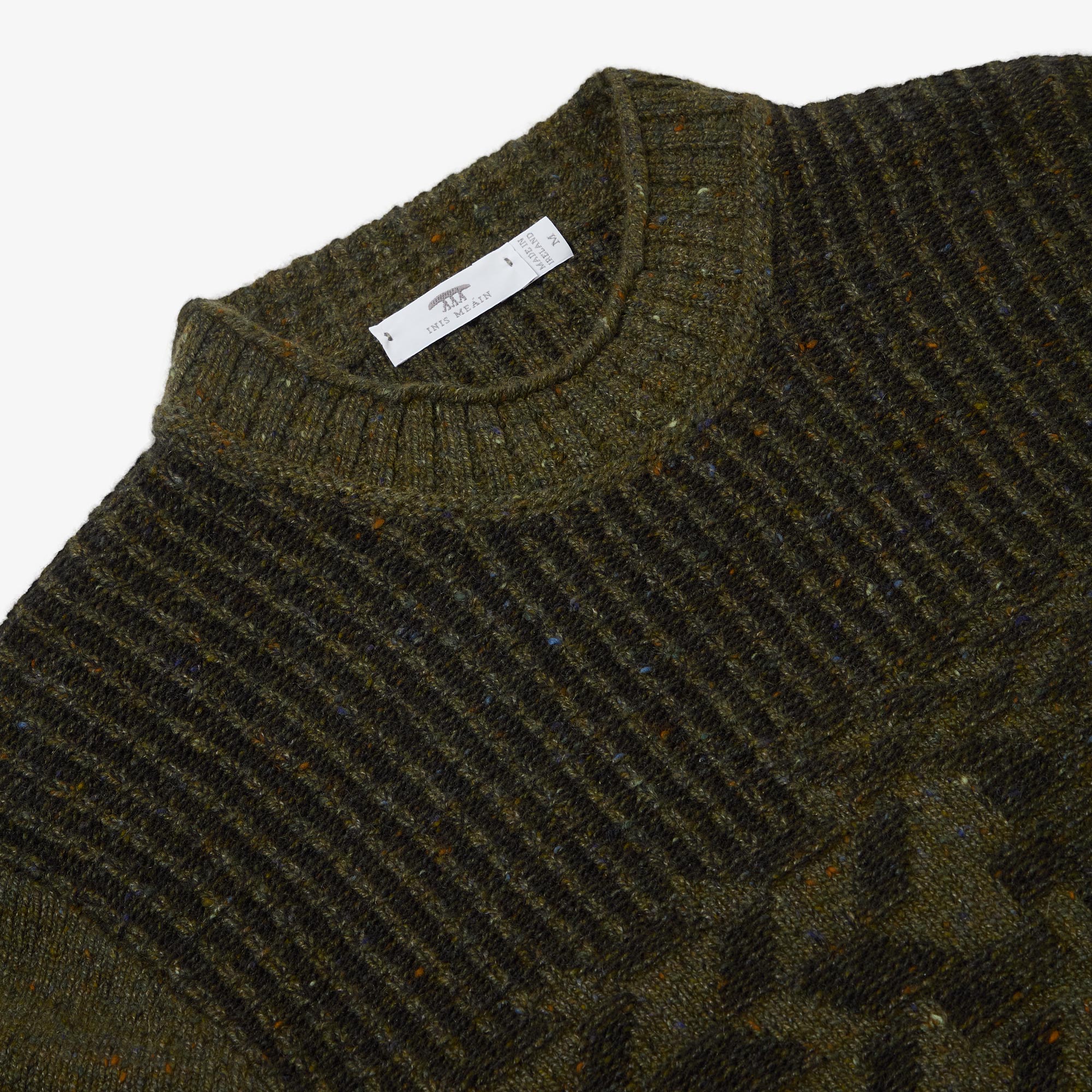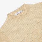 Available in Khaki Mix, plating a Khaki marled yarn with a deep Navy flecked with rust, blue and green. Also available in Beige Fleck, a warm marl shade with subtle cream and light tan highlights. Designed, made and hand-finished in our Aran Islands workshop.