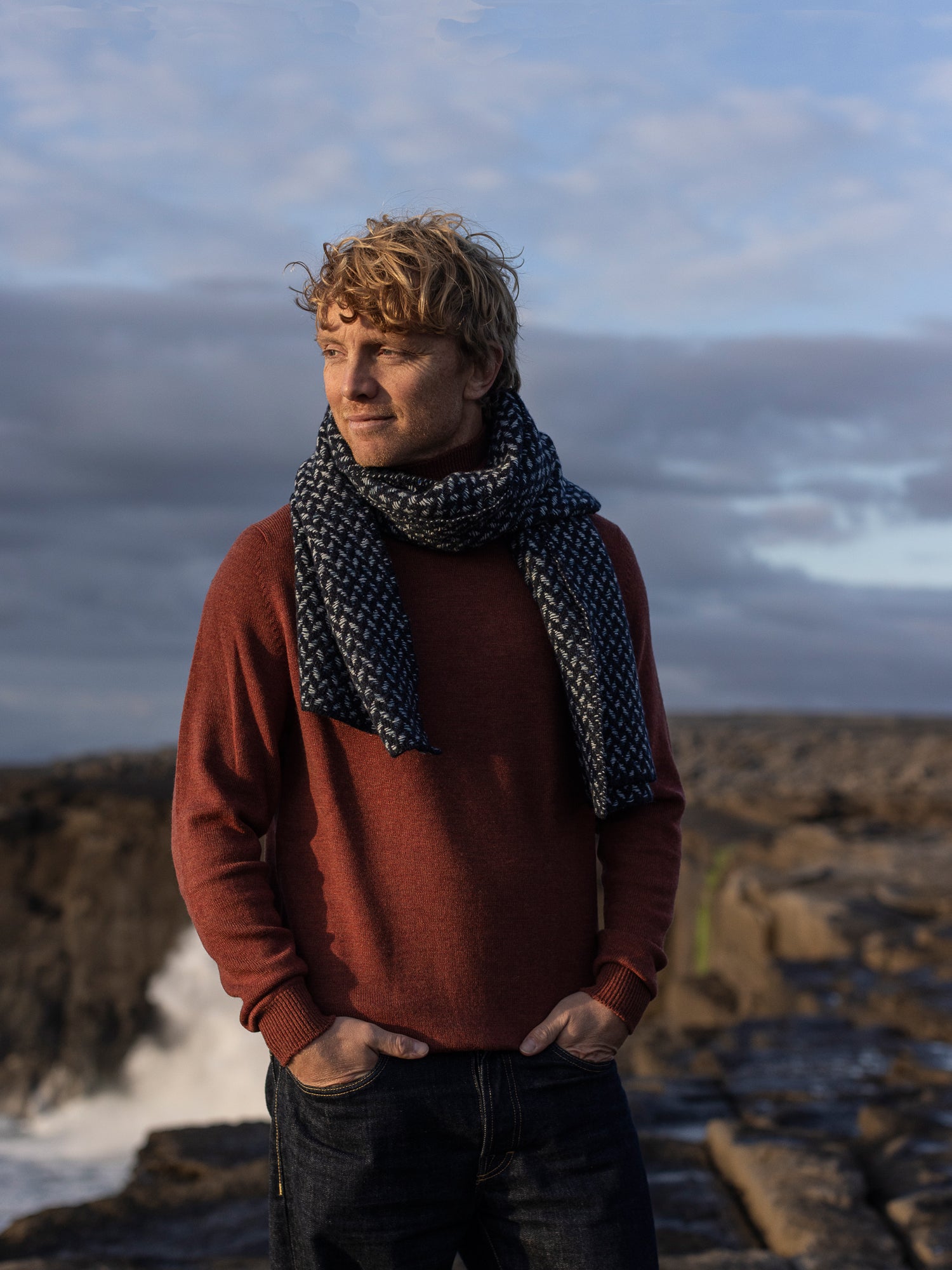 Available in cool Black, a beautiful olive Green, warm terracotta Rust, versatile Beige Marl, in rich Navy, and in vibrant Cherry. Designed, made and hand-finished in our Aran Island's workshop.