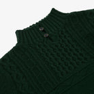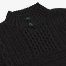 Available in classic Black, a rich solid Green, and Black Mix, a creatively complex colour-way involving dark brown, charcoal, black and a rainbow of multi-coloured flecks. Designed, made and hand-finished in our Aran Islands workshop. An Aran Sweater made in the only knitwear factory in the Aran Islands - a true Aran from Aran.