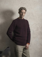 Influenced by the raised, ridge beds for potato growing and the deep grykes cross-hatching the limestone pavements on the island, we have used a bold linear rib to design a variety of novel styles for our Autumn/Winter 2024 Ridges and Walls Collection. The Ridges Aran Gansey gives a nod to Aran Islands traditions without being a traditional cabled Aran Sweater. The ridges create a feeling of modernity and restraint, decorating only the top body area as was often the case in the original fisherman sweaters. A seamless 2 by 2 rib neckline ensures additional warmth and comfort, and the loft of the ridges have created breathability in a slightly lighter weight than our signature Aran Sweaters.