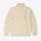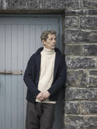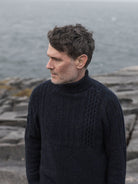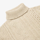Influenced by the raised, ridge beds for potato growing and the deep grykes cross-hatching the limestone pavements on the island, we have used a bold linear rib to design a variety of novel styles for our Autumn/Winter 2024 Ridges and Walls Collection. The Ridges Aran Turtle Neck is a playful Aran Sweater, including many of the traditional Aran stitches and cables but used without the traditional symmetry of Aran knitting. The ridge rib gives a focus to the decoration in the upper body and sleeves of this Aran Gansey style. With a generous, soft and snug Turtle Neck, this is a slightly lighter weight than our signature Cashmere Aran Sweaters, with additional loft and breathability.