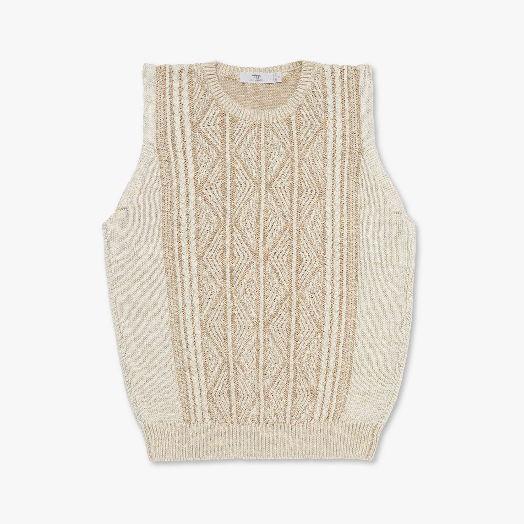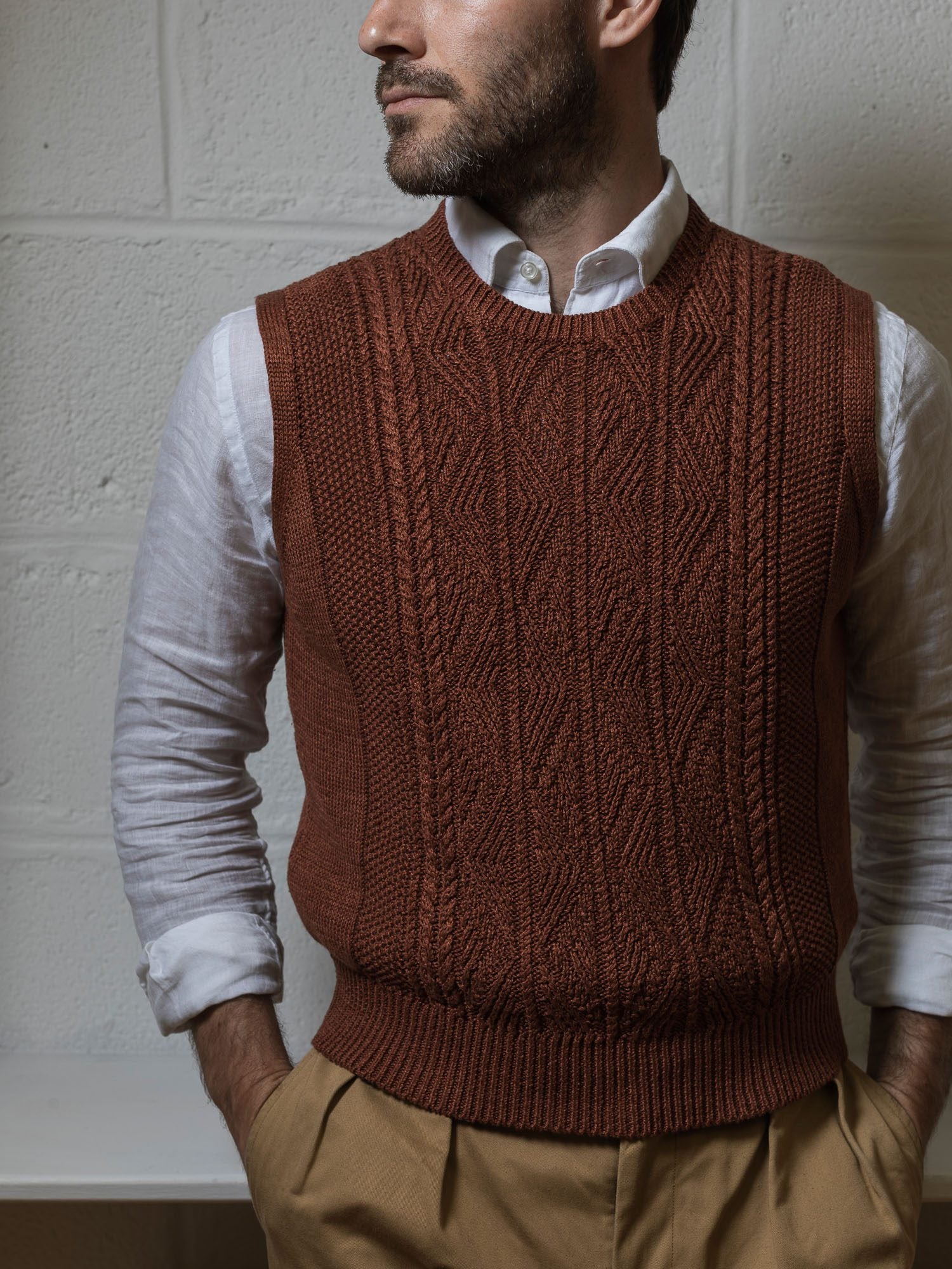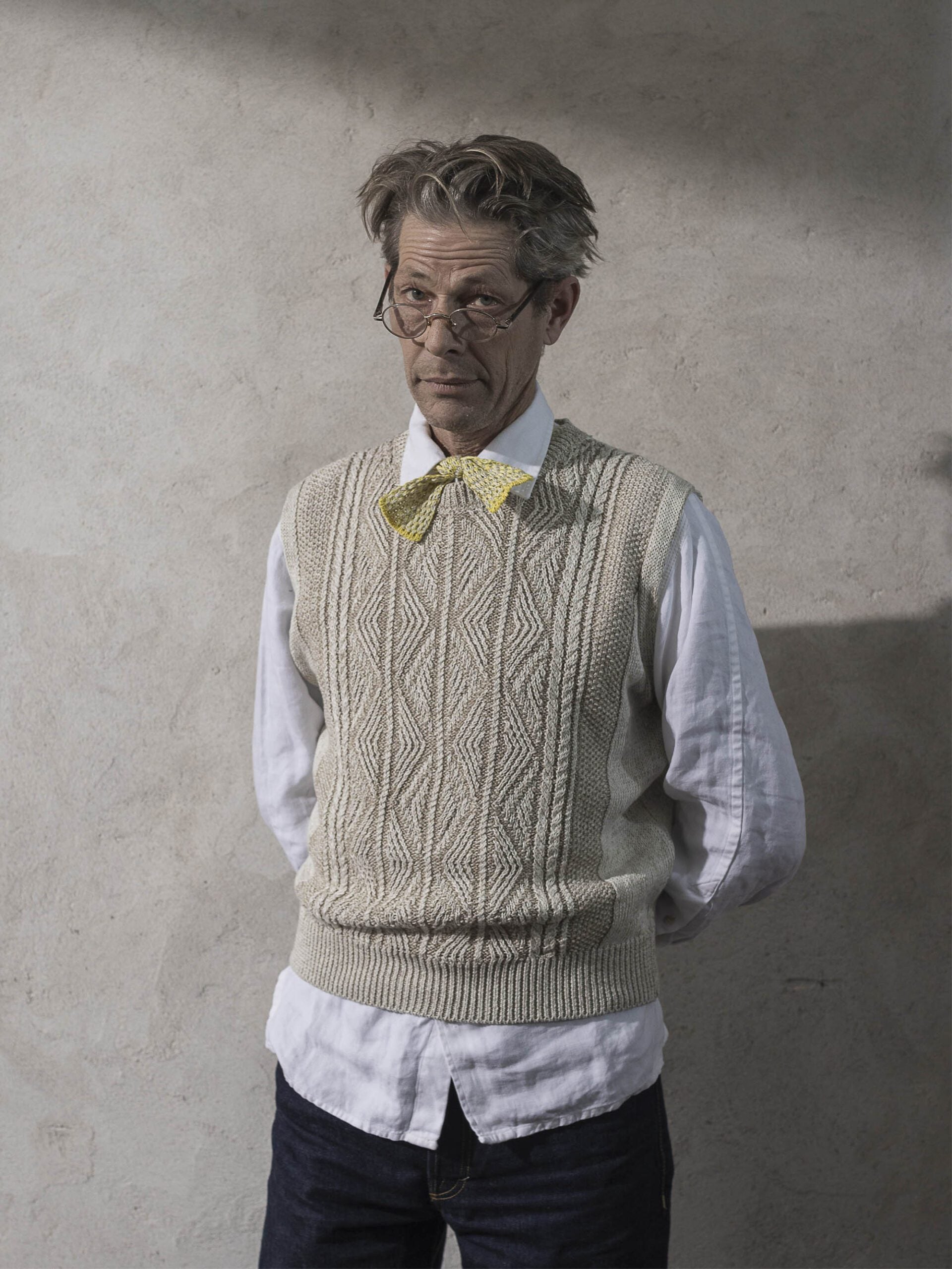 Our famous and much-loved refined Aran sweater in 100% linen is now available in a distinctive crew-neck vest. On the Island, Aran patterns were passed down through families with pride. Inis Meáin’s signature Patented Aran pattern has the distinction of being held in the collection of the National Museum of Ireland. Unique to Inis Meáin, the intricate composition of this fine cable knit pattern creates a tailored, classic look reminiscent of the strong twists of the Island fishing ropes. European Masters of Linen quality guarantees European linen of the highest standard and traceability from field to yarn.