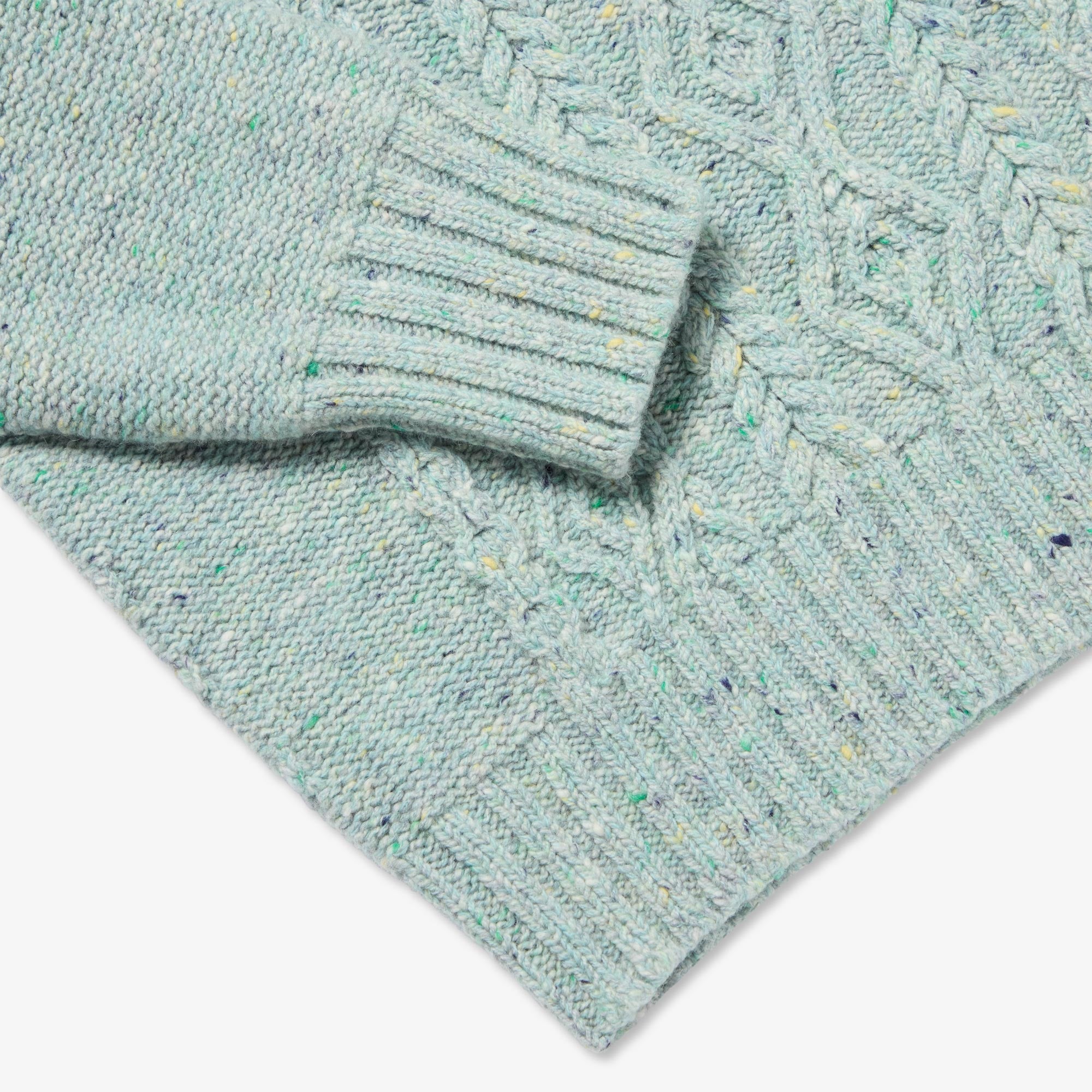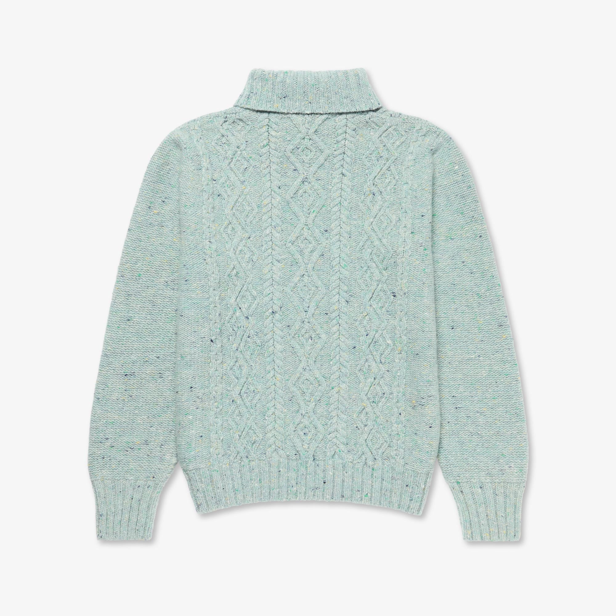 Available in Mint Fleck, an aquamarine marl, and in Silver Fleck, a light grey marl both with subtle navy and soft yellow flecks - beautifully light and feminine colourways that serve to highlight the destinctive Aran cabelling. Designed, made and hand-finished in our Inis Meáin workshop. A true Aran Sweater from the Aran Islands.
