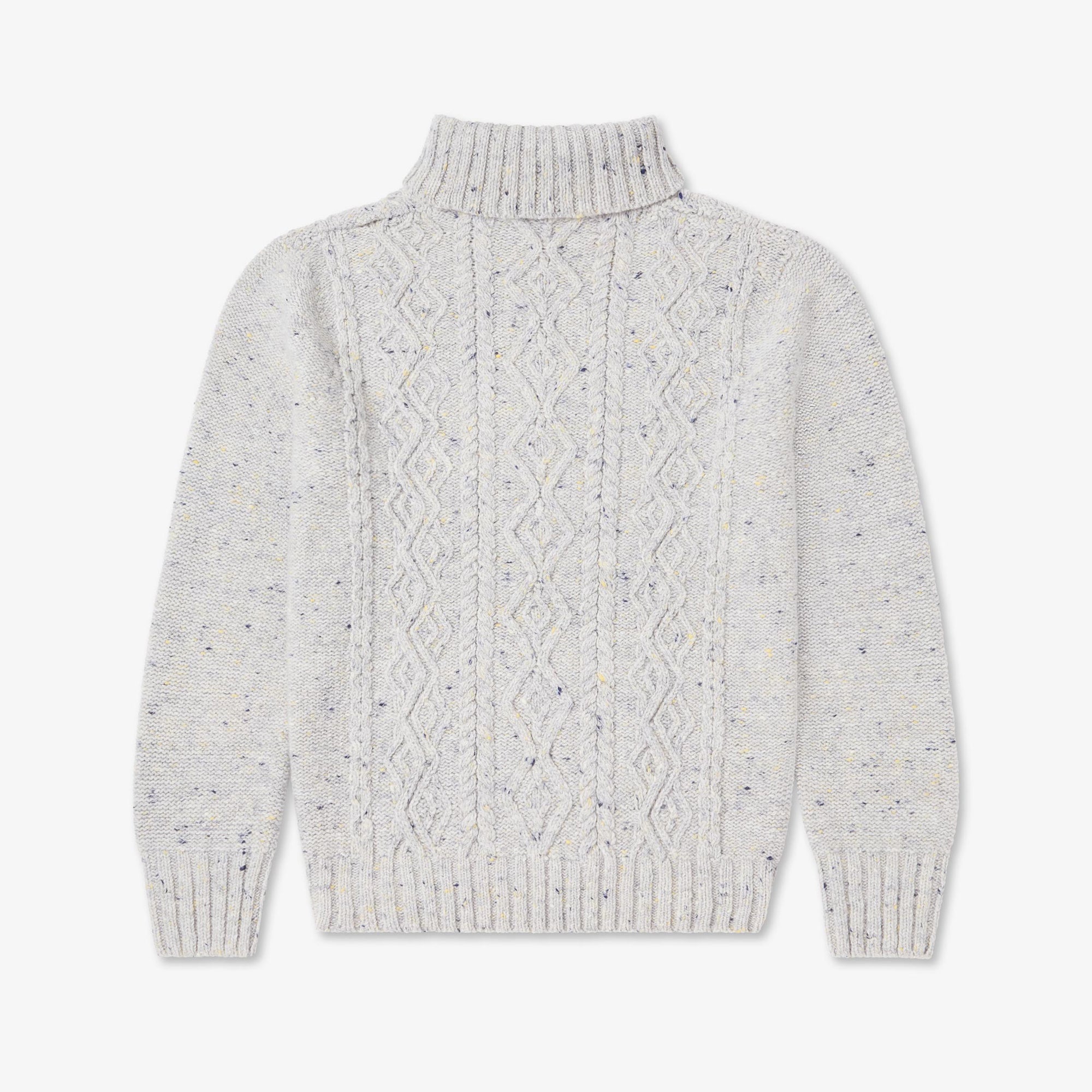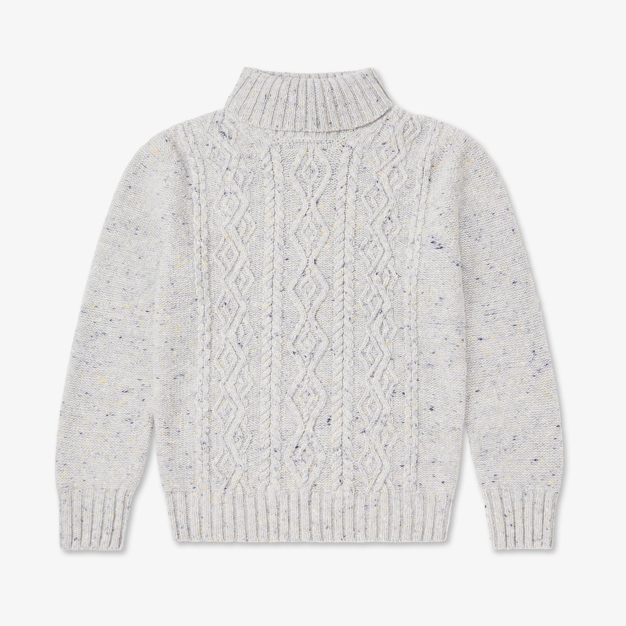 Inspired by the highly decorated styles once prized as Sunday Best formal wear on the Island, the Inis Meáin signature cable knit Cashmere Aran Turtle Neck combines luxury with heritage. This Aran sweater has a gentle turtle neck fit – providing additional warmth without constriction. Purl stitch sleeves without cables keep the silhouette streamline and stylish, lending warmth without bulk. Crafted with super-premium Cashmere and Merino yarn from Italian heritage producer, Filati Biagioli Modesto, made to the highest European environmental standards using only organic dyes.