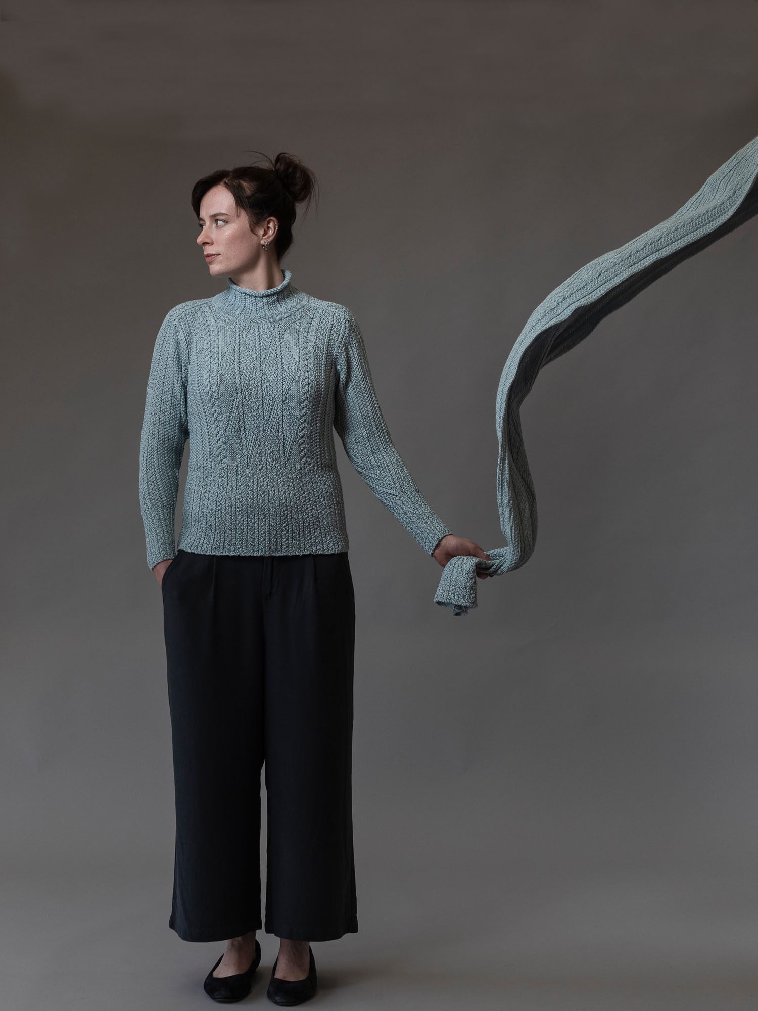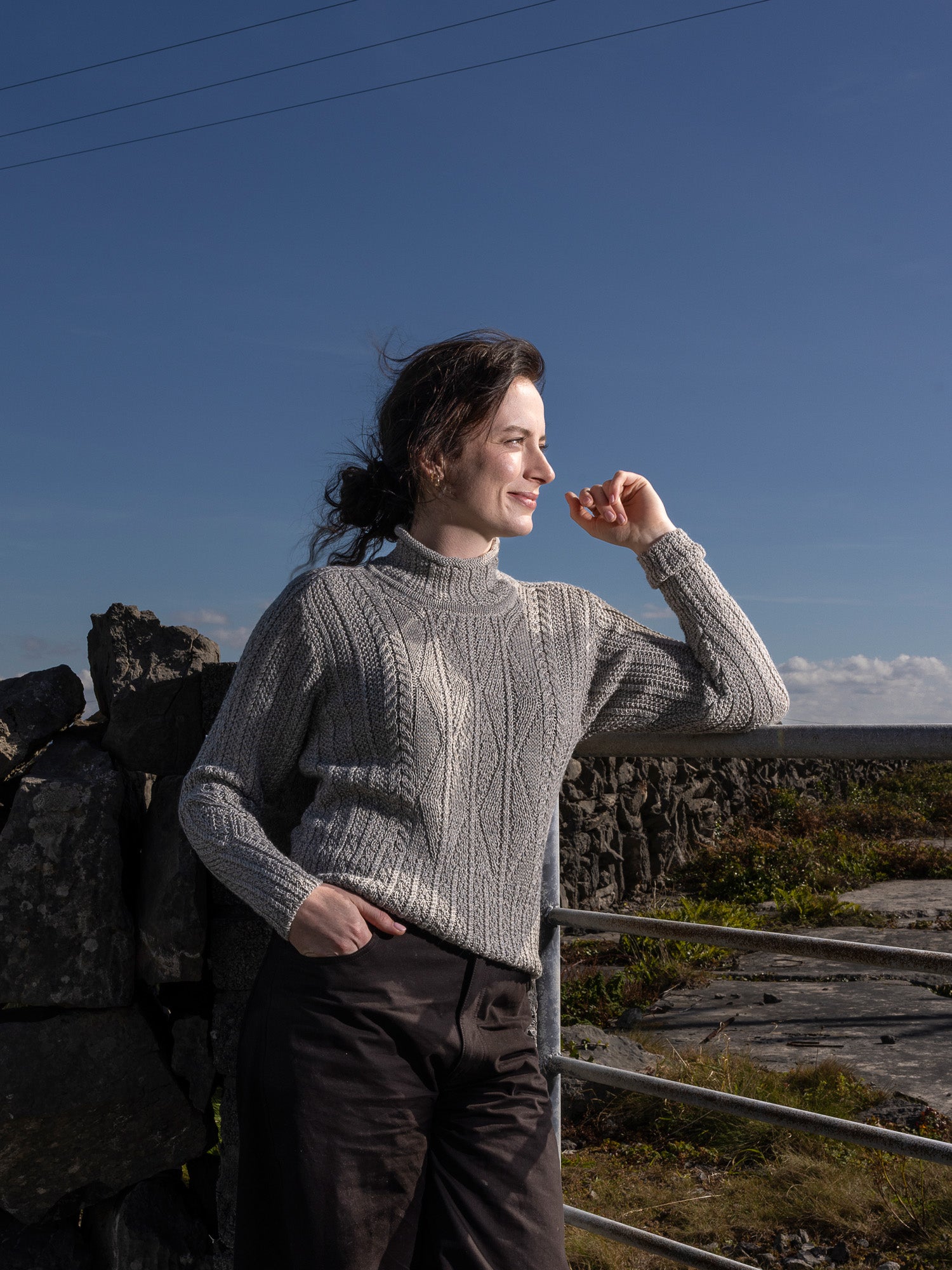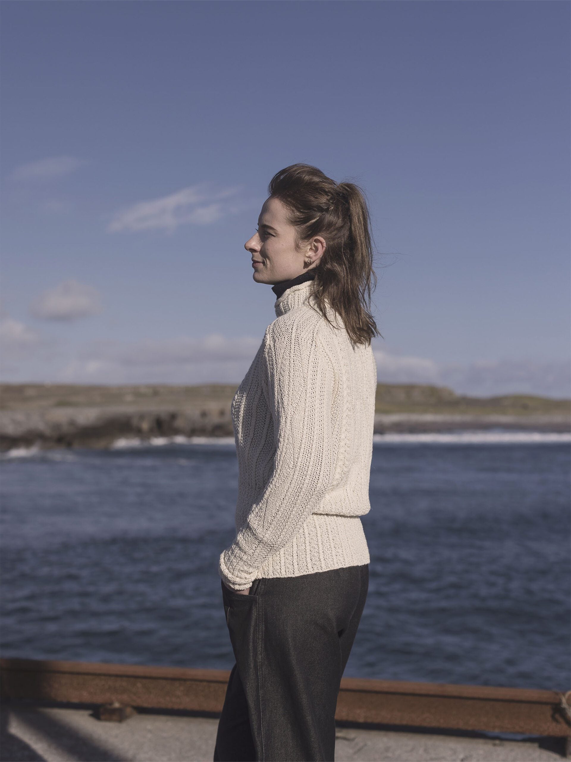 On the Island, Aran patterns were passed down through families with pride. Inis Meáin's signature Patented Aran pattern has the distinction of being held in the collection of the National Museum of Ireland. Unique to Inis Meáin, the intricate composition of this fine cable knit pattern is reminiscent of the strong twists of the Island fishing ropes. Eminently versatile with a beautiful drape, this superbly soft baby alpaca and silk sweater teams well with jeans for a unique, smart-casual look, or as an elegant ensemble with a skirt or trousers. Crafted from Baby Alpaca and Silk made to the highest environmental standards using only organic and premium quality dyes.