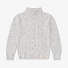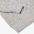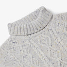 Available in Mint Fleck and in Silver Fleck, a light grey marl with subtle navy and soft yellow flecks, highlighting the intricate Aran pattern. Designed, made and hand-finished in our Aran Islands workshop.