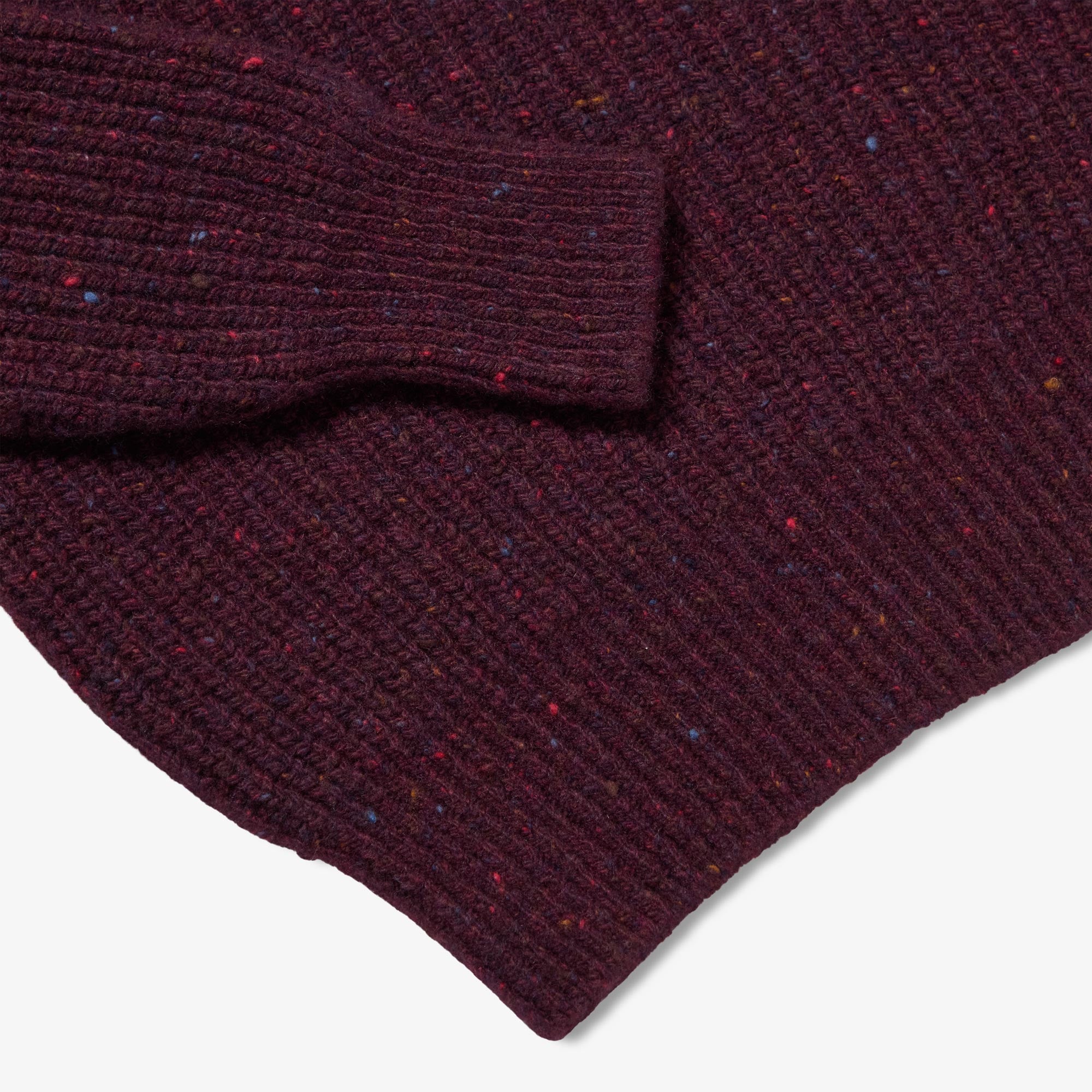 Available in Burgundy Fleck, Red Fleck, Beige Fleck and Mint Fleck – beautiful classic colours each elevated with their own mixture of tiny bright flecks in warm tones. Designed, made and hand-finished in our Aran Islands workshop.