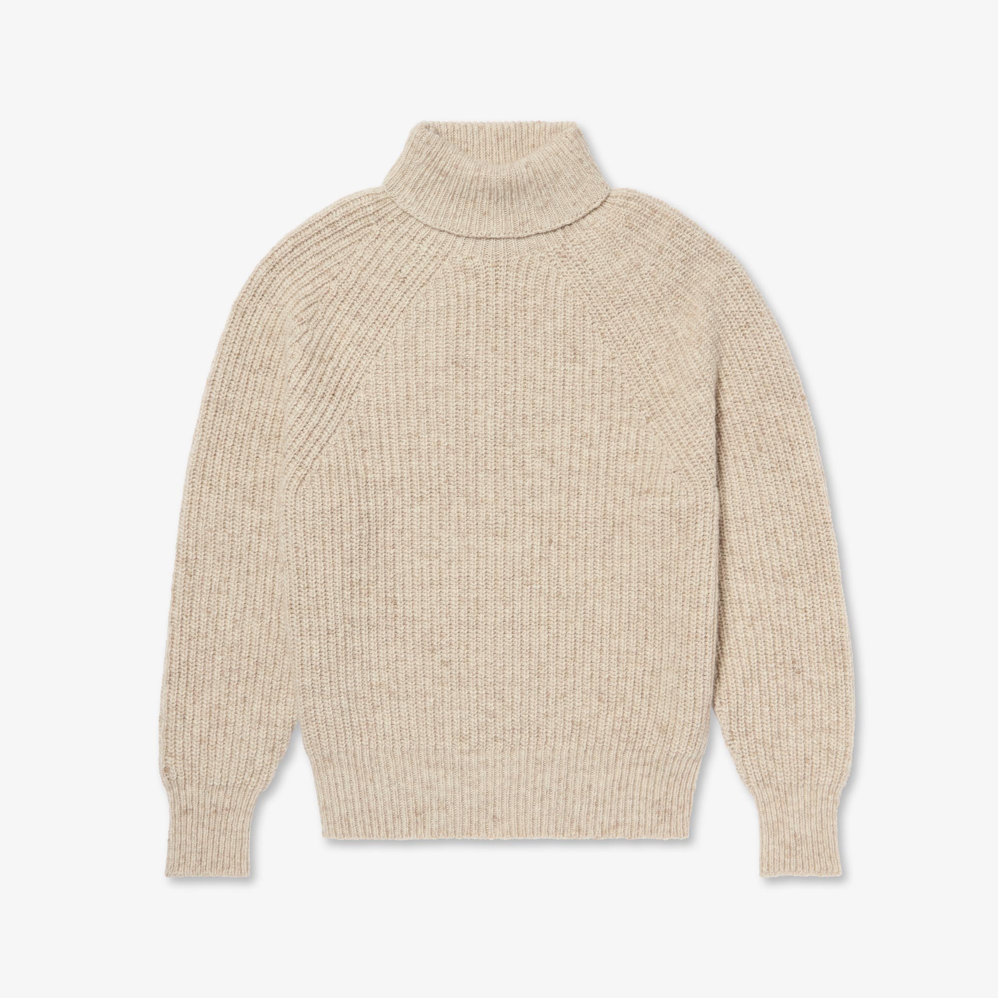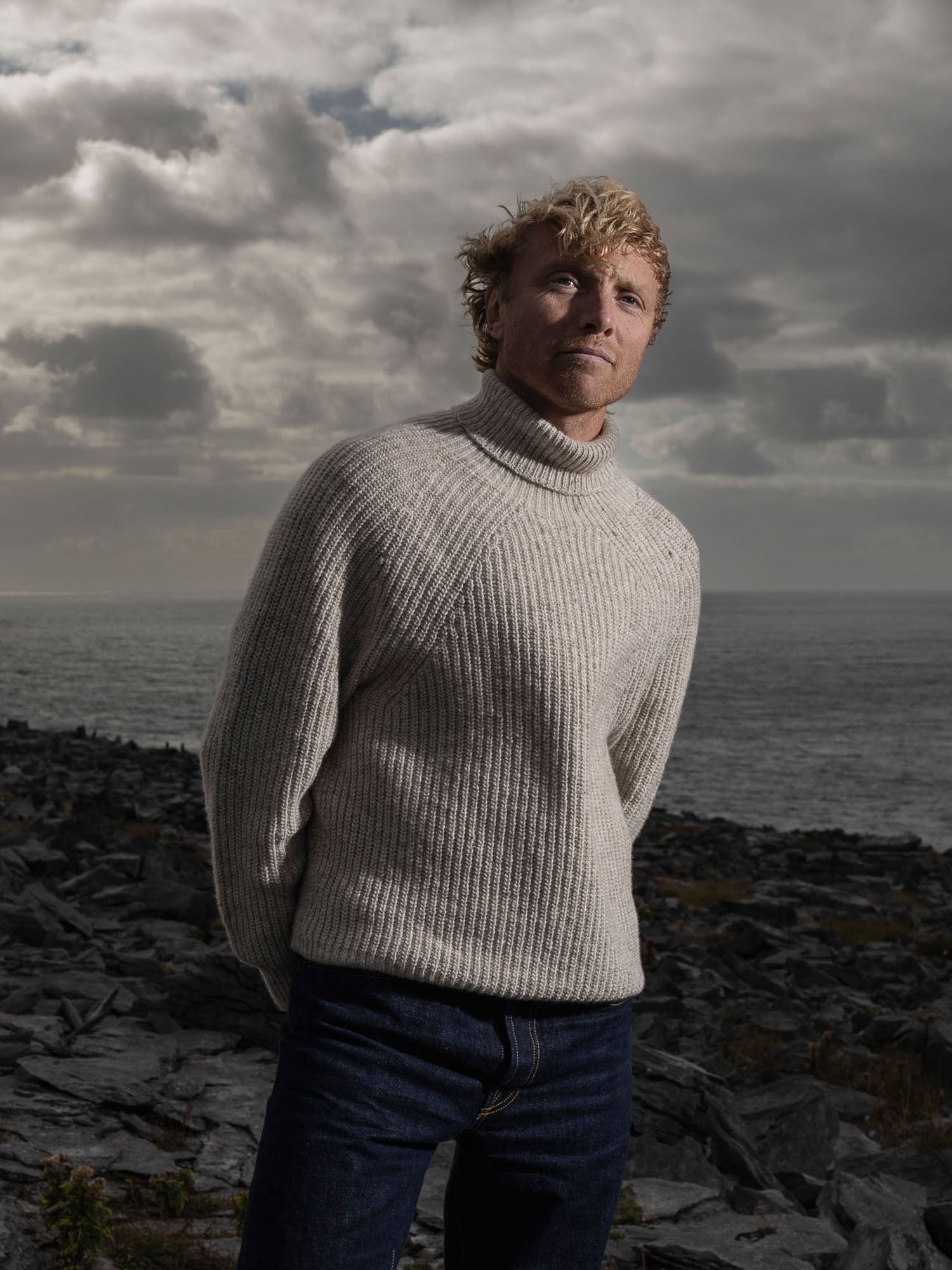 At Inis Meáin, we have been designing and making high quality knitwear, in the Aran Islands, for almost 50 years. Traditionally a predominantly fishing and farming community, the Boatbuilder is our highly popular version of an Aran Fisherman Sweater. The distinctive raglan ribbed pattern was originally designed for flexibility in the shoulder area for carrying out the physical tasks of lobster fishing or currach-building. Practical and supremely comfortable, with a high roll neck for warmth.