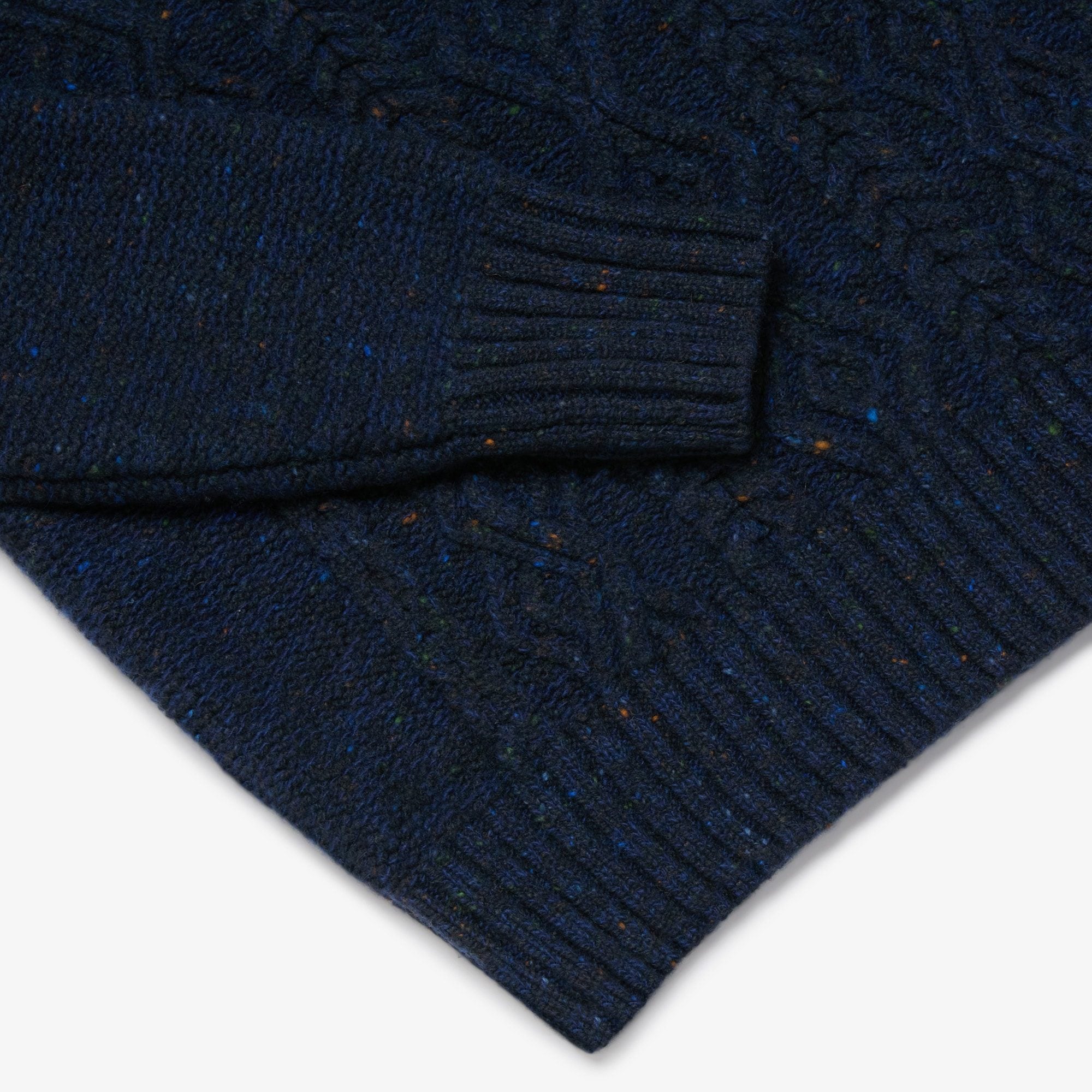 Newly available in Blue Fleck, a true maritime shade with electric blue and white highlights; joining Navy, Beige and Red - classic colours each elevated with their own mixture of tiny bright flecks in warm tones. Designed, made and hand-finished in our Aran Islands workshop. An Aran Sweater made in the only knitwear factory in the Aran Islands - a true Aran from Aran.