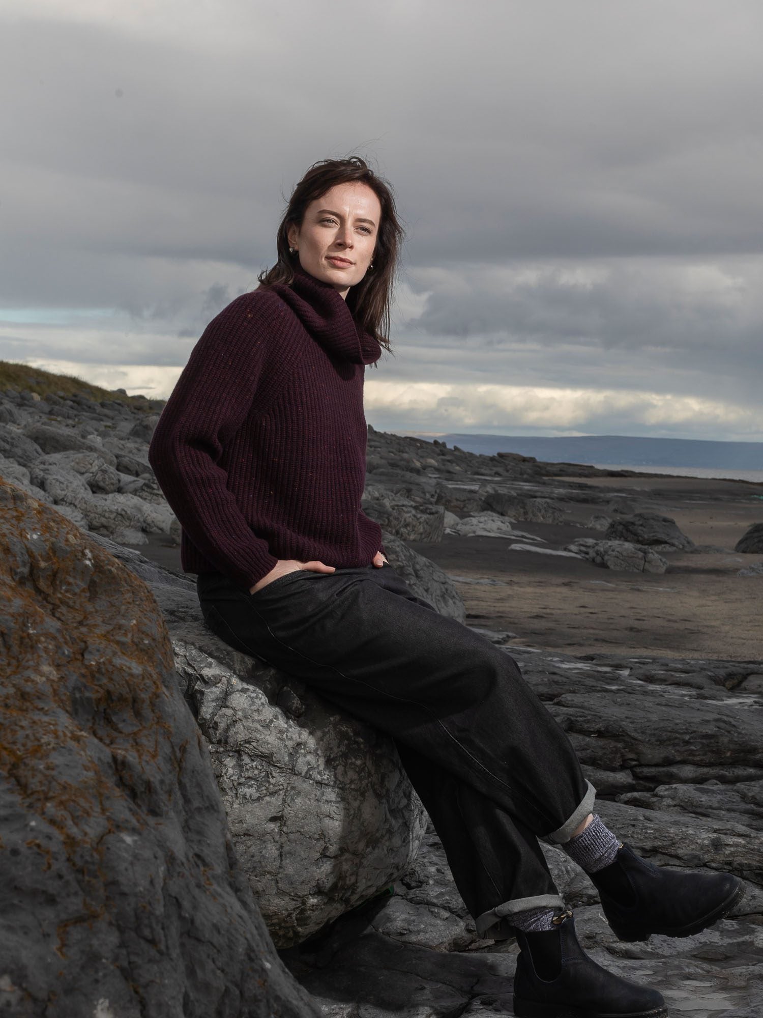 Newly available in Burgundy Fleck, a rich shade of maroon elevated with bright flecks of crimson red, orange and electric blue, and favourites Charcoal Fleck, a versatile dark grey elevated with highlights of warm orange and white, and Mint Fleck, reminiscent of grey-green winter lavender leaves with subtle yellow and green flecks and soft, medium Brown. Designed, made and hand-finished in our Aran Islands workshop.
